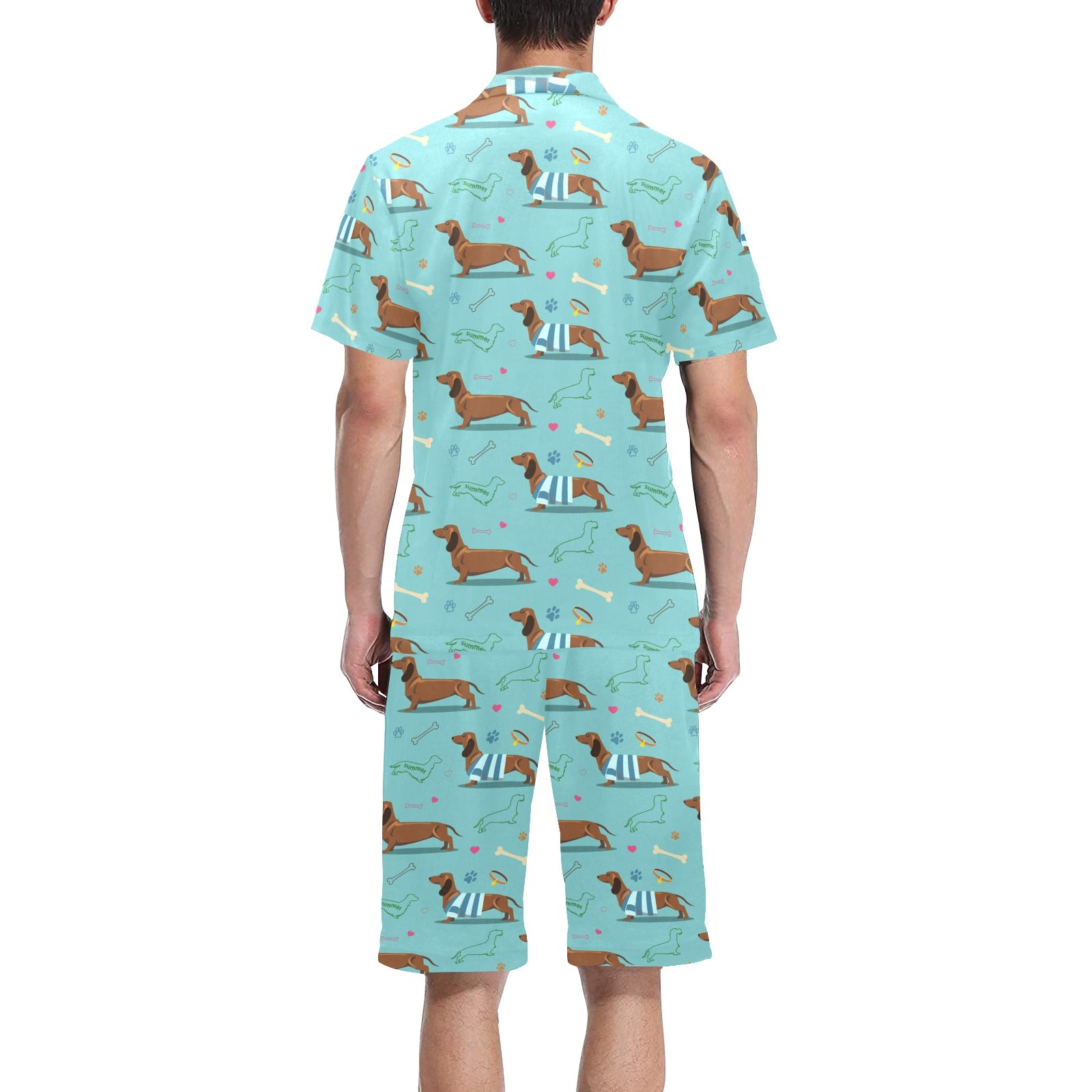 Dachshund decorative background Men's V-Neck Short Pajama Set