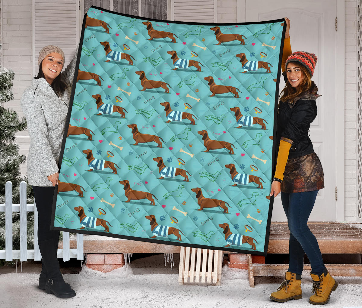 Dachshund Decorative Background Premium Quilt is a uniqued design and limited item. It made to order, hand printed, and sewn with love in our factory.