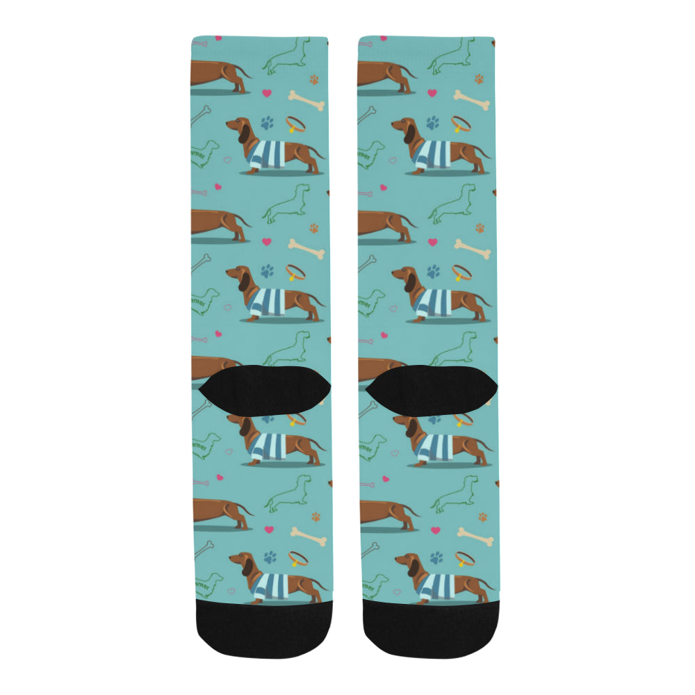 Dachshund decorative background Crew Socks are uniqued design and limited item. It made to order, hand printed, and sewn with love in our factory.