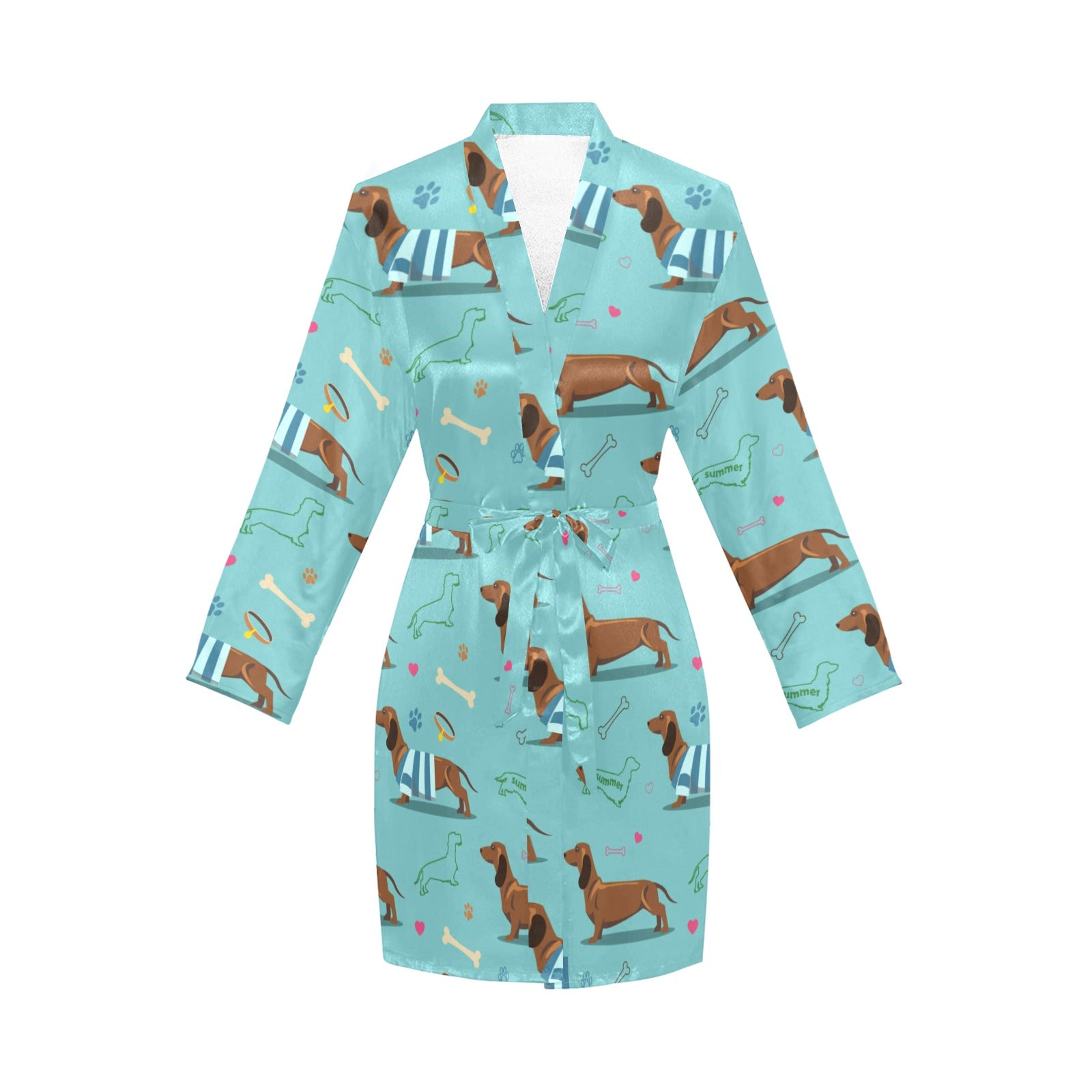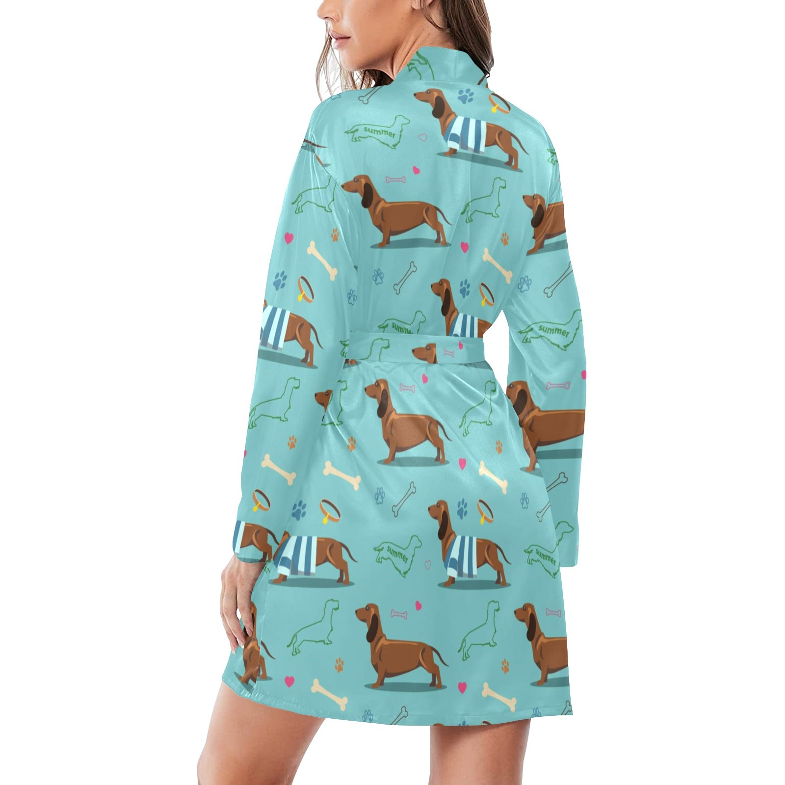 Dachshund decorative background Women's Long Sleeve Belted Night Robe