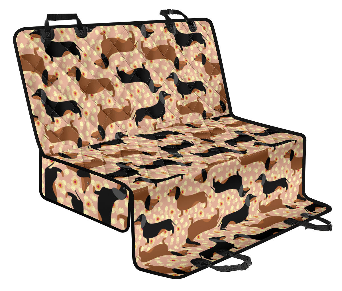 Dachshund floral background Dog Car Seat Covers is a uniqued design and limited item. It made to order, hand printed, and sewn with love in our factory.