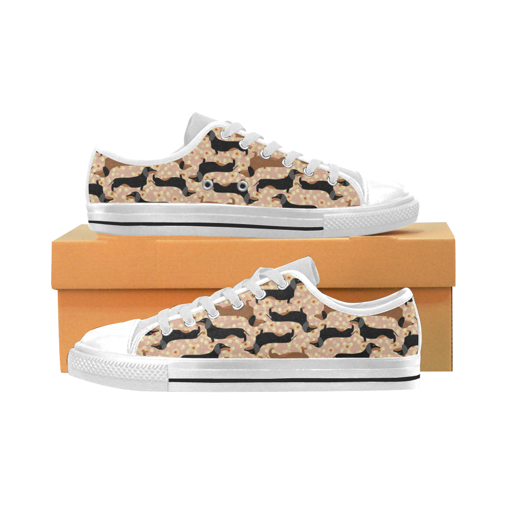 Dachshund floral background Men's Low Top Canvas Shoes White