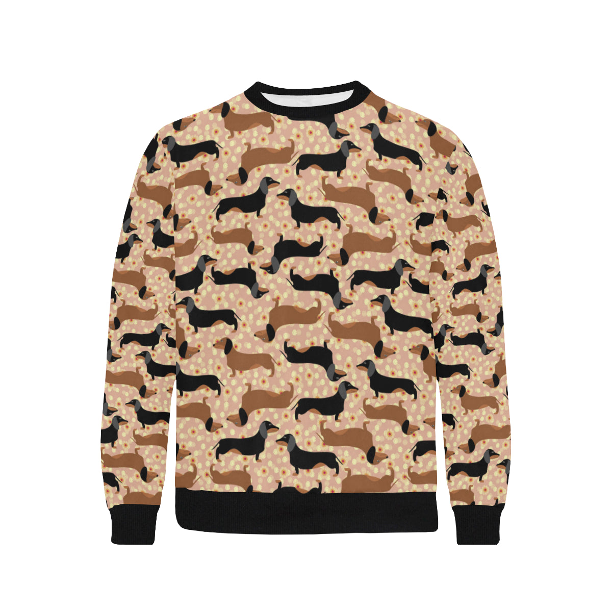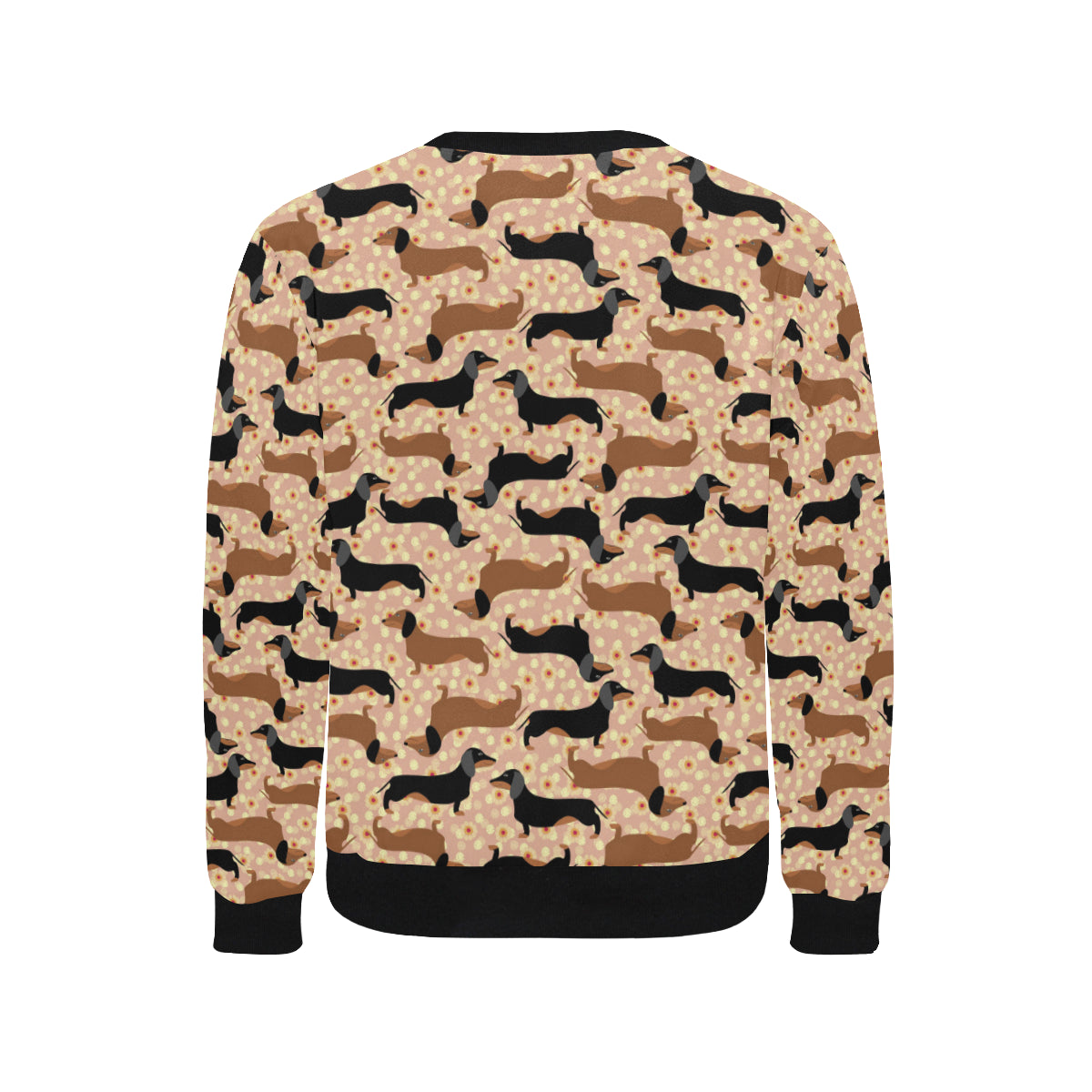 Dachshund floral background Men's Crew Neck Sweatshirt