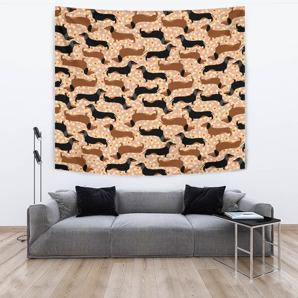 Dachshund Floral Background Wall Tapestry