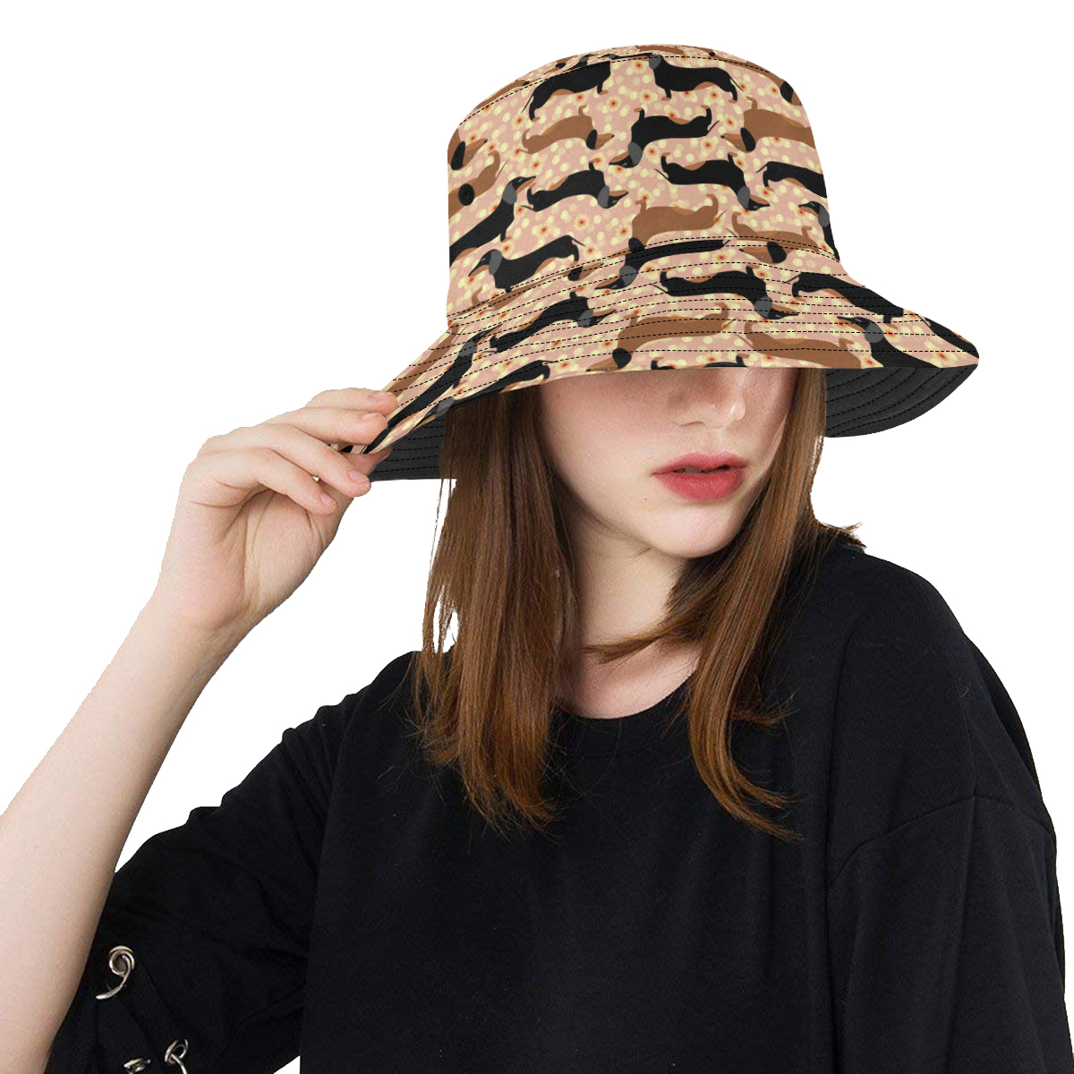 Dachshund floral background Unisex Bucket Hat is a uniqued design and limited item. It made to order, hand printed, and sewn with love in our factory.