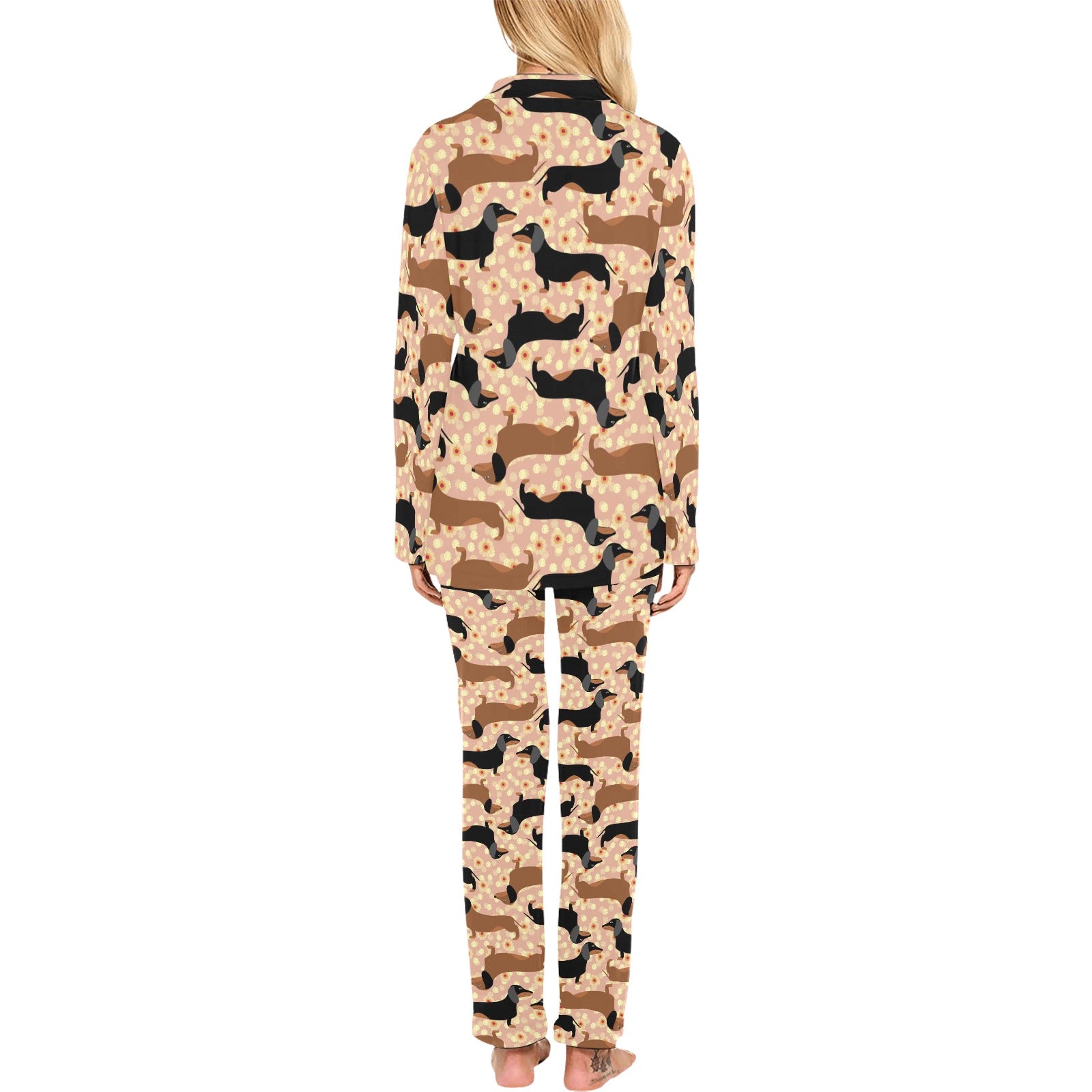 Dachshund floral background Women's Long Pajama Set