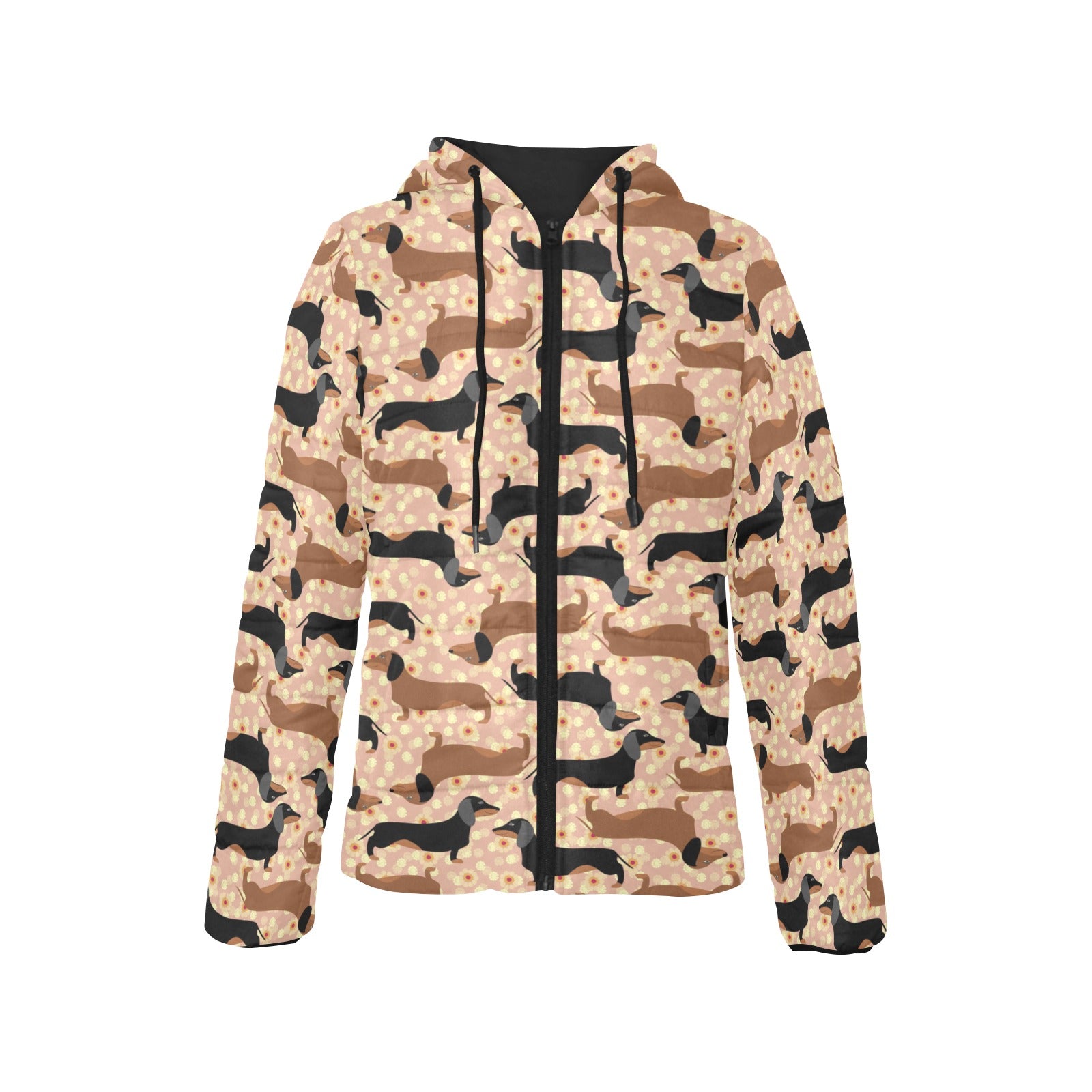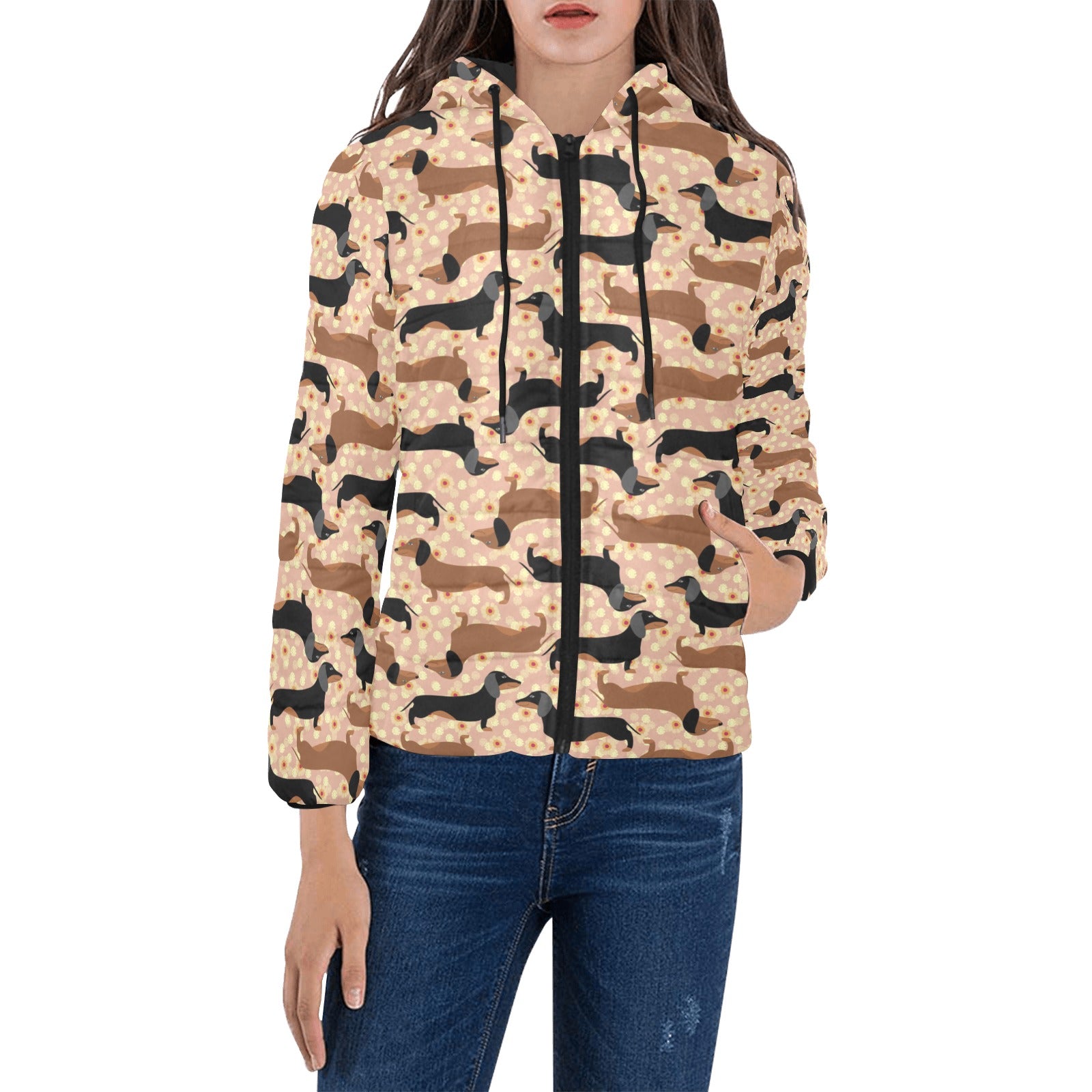 Dachshund floral background Women's Padded Hooded Jacket