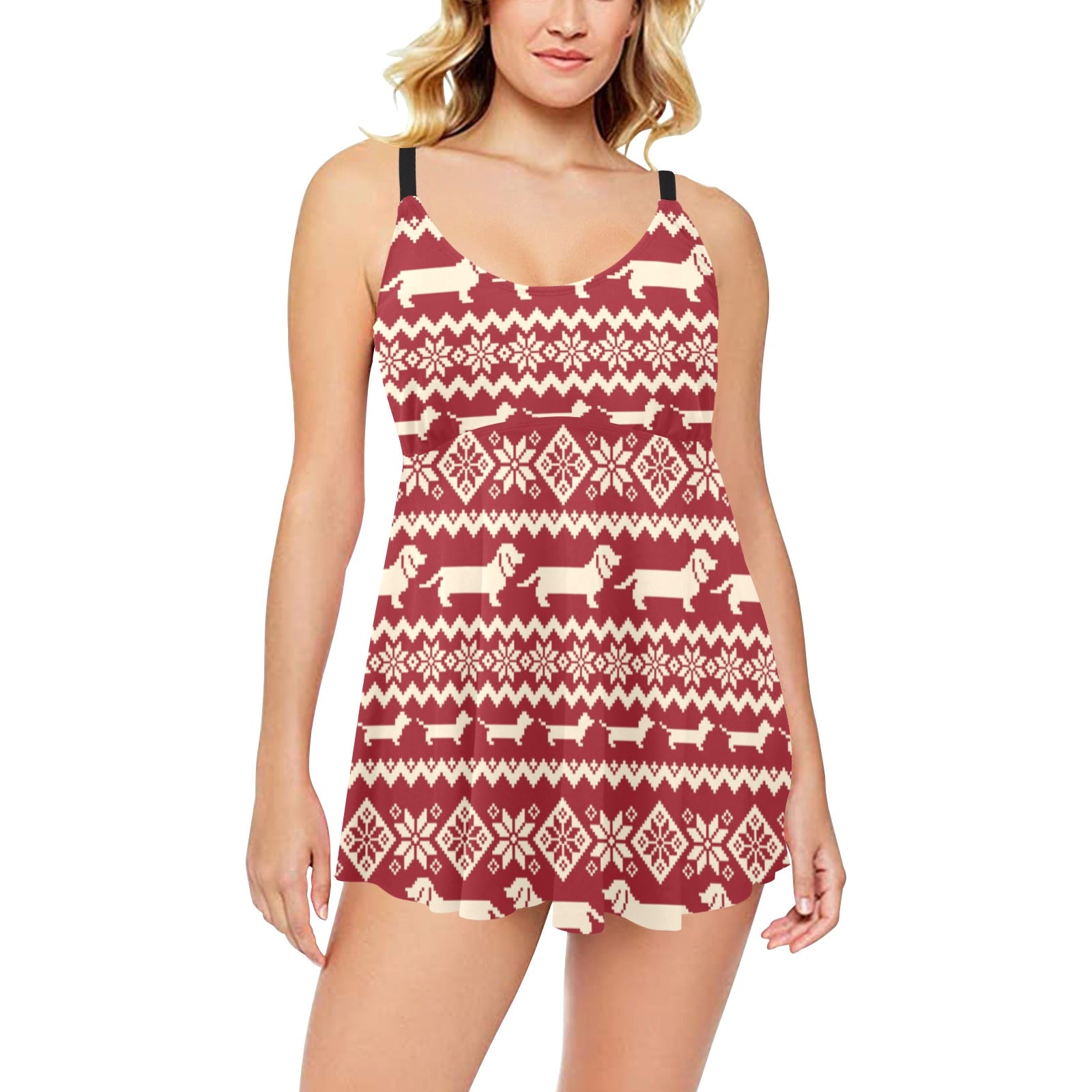 Dachshund Nordic pattern Chest Sexy Pleated Two Piece Swim Dress