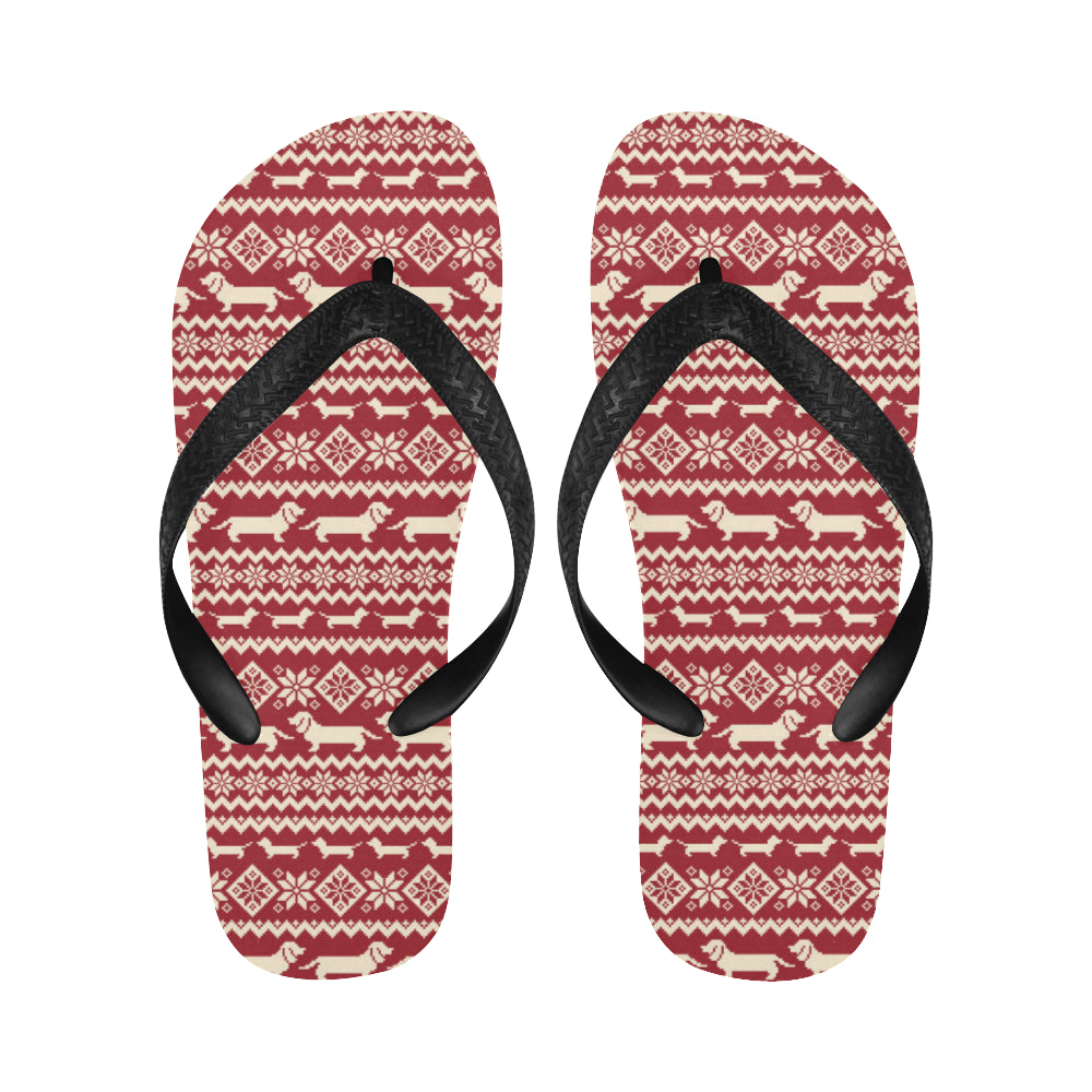 Dachshund Nordic pattern Unisex Flip Flops is a uniqued design and limited item. It made to order, hand printed, and sewn with love in our factory.