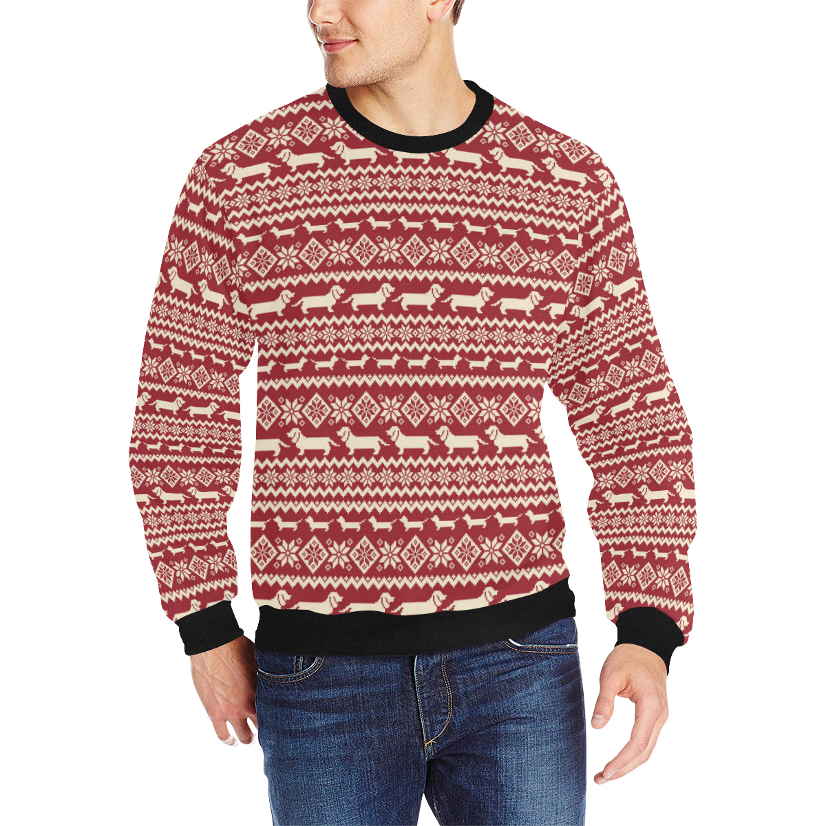 Dachshund Nordic pattern Men's Crew Neck Sweatshirt is a uniqued design and limited item. It made to order, hand printed, and sewn with love in our factory.