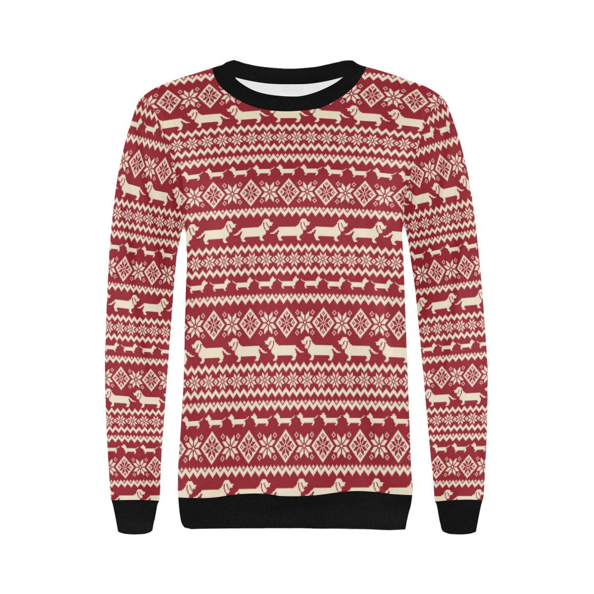 Dachshund Nordic pattern Women's Crew Neck Sweatshirt is a uniqued design and limited item. It made to order, hand printed, and sewn with love in our factory.