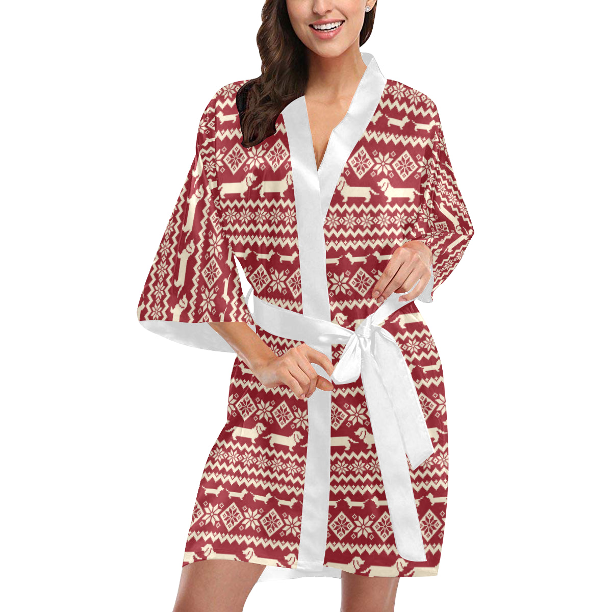 Dachshund Nordic pattern Women's Short Kimono Robe is a uniqued design and limited item. It made to order, hand printed, and sewn with love in our factory.