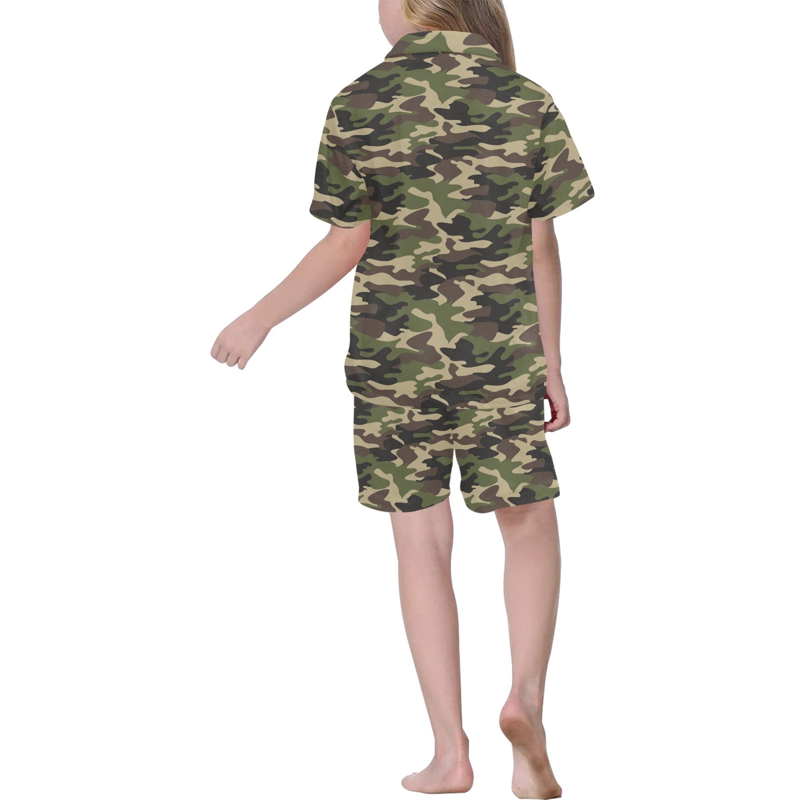 Dark Green camouflage pattern Kids' Boys' Girls' V-Neck Short Pajama Set