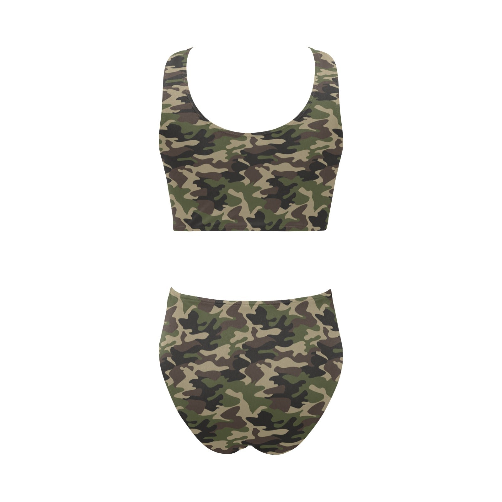 Dark Green camouflage pattern Chest Bowknot High Waisted Bikini Swimsuit