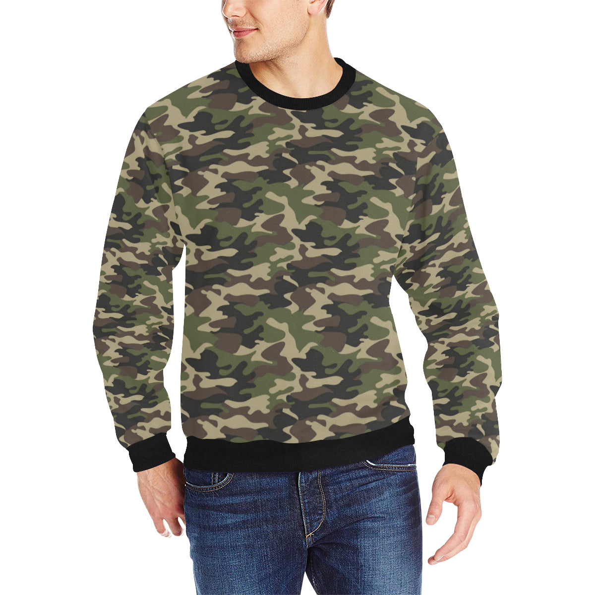 Dark Green camouflage pattern Men's Crew Neck Sweatshirt