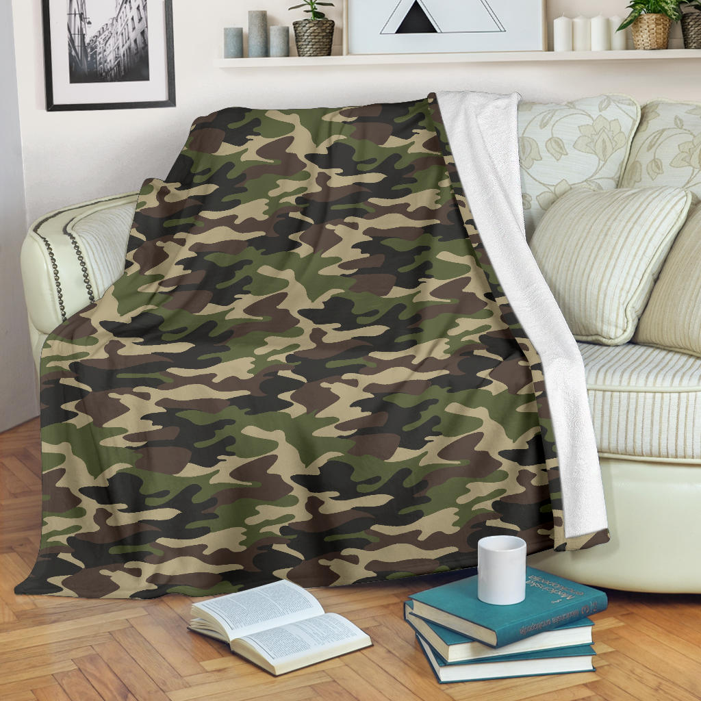 Dark Green camouflage pattern Premium Blanket is a uniqued design and limited item. It made to order, hand printed, and sewn with love in our factory.