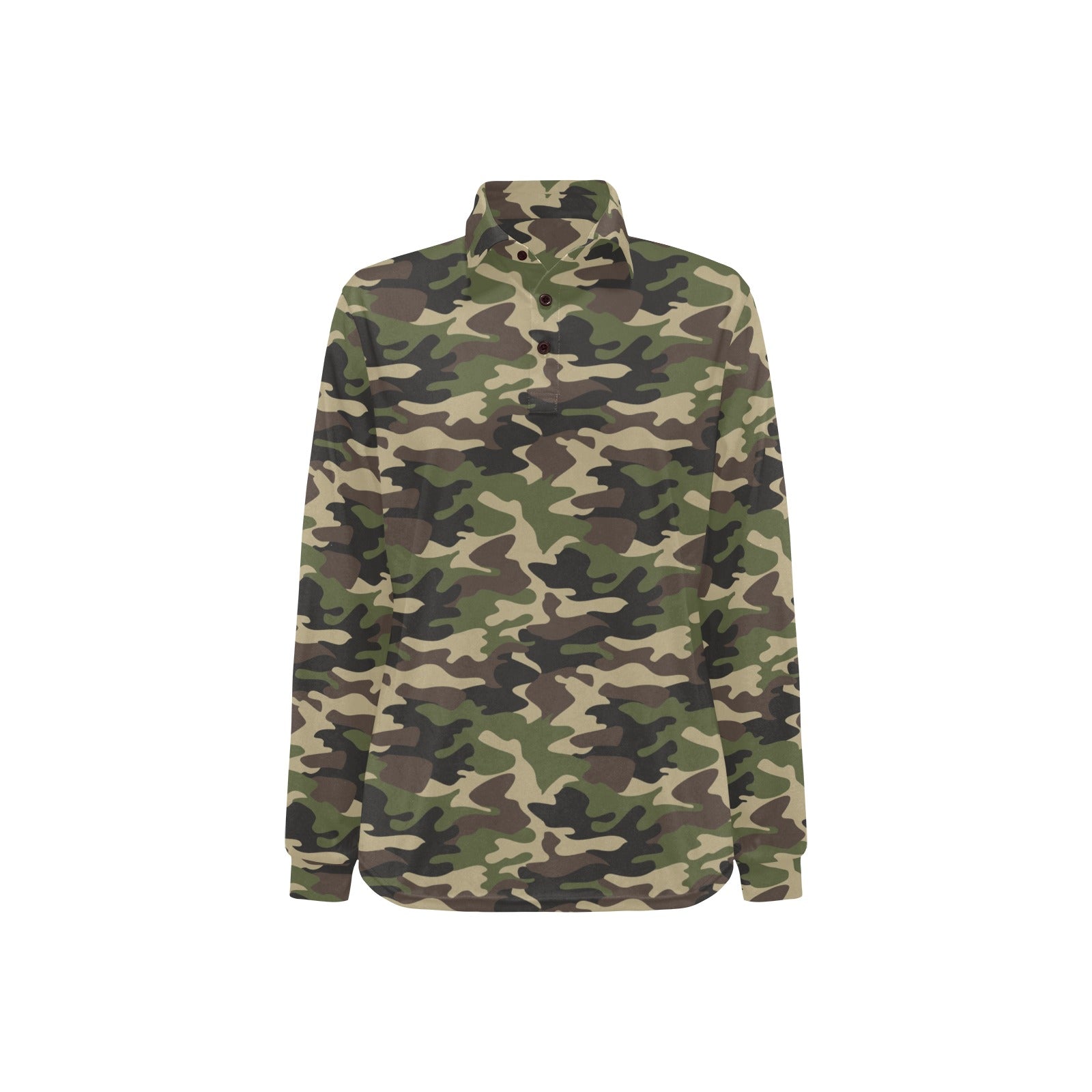 Dark Green camouflage pattern Women's Long Sleeve Polo Shirt