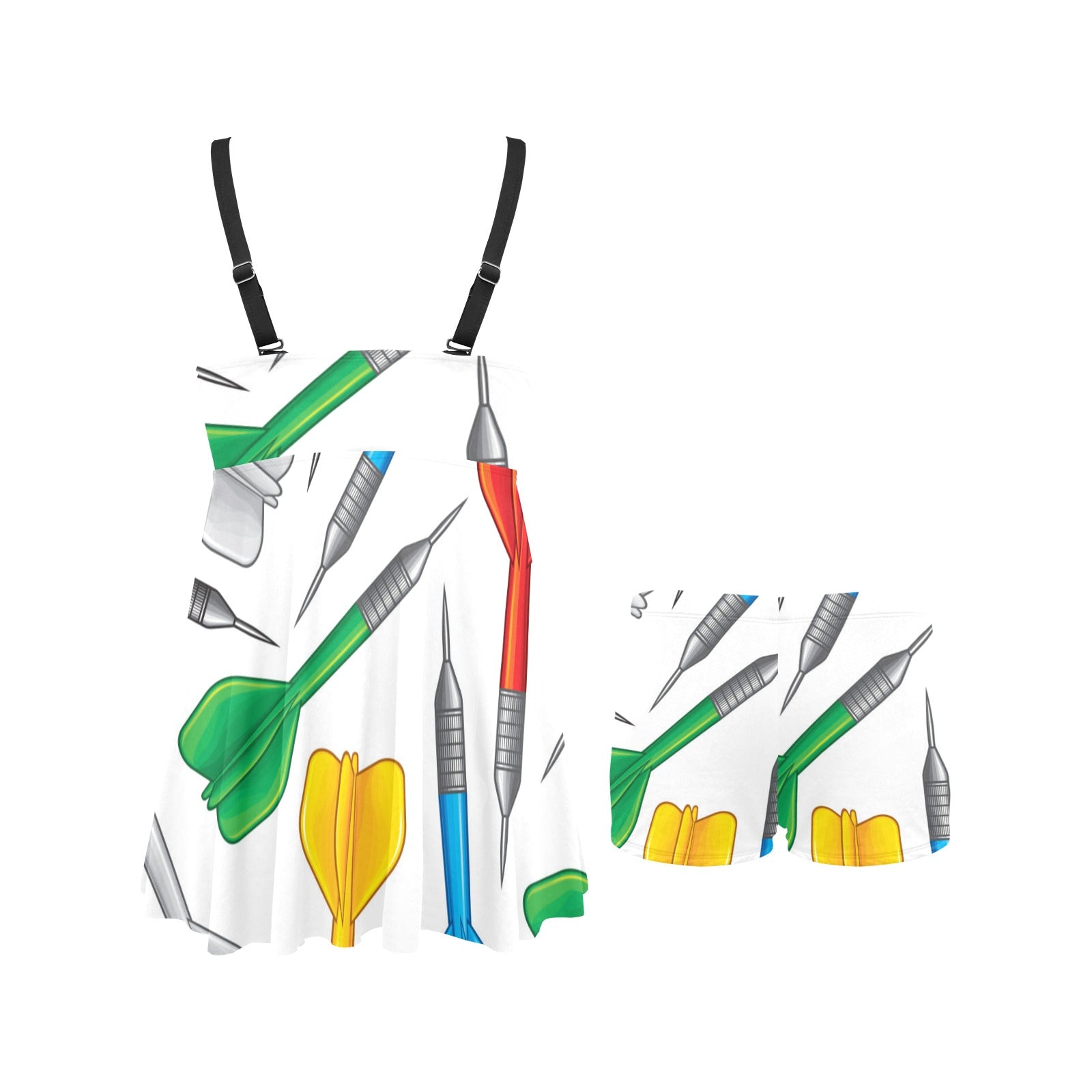 Darts Pattern Print Design 03 Chest Sexy Pleated Two Piece Swim Dress