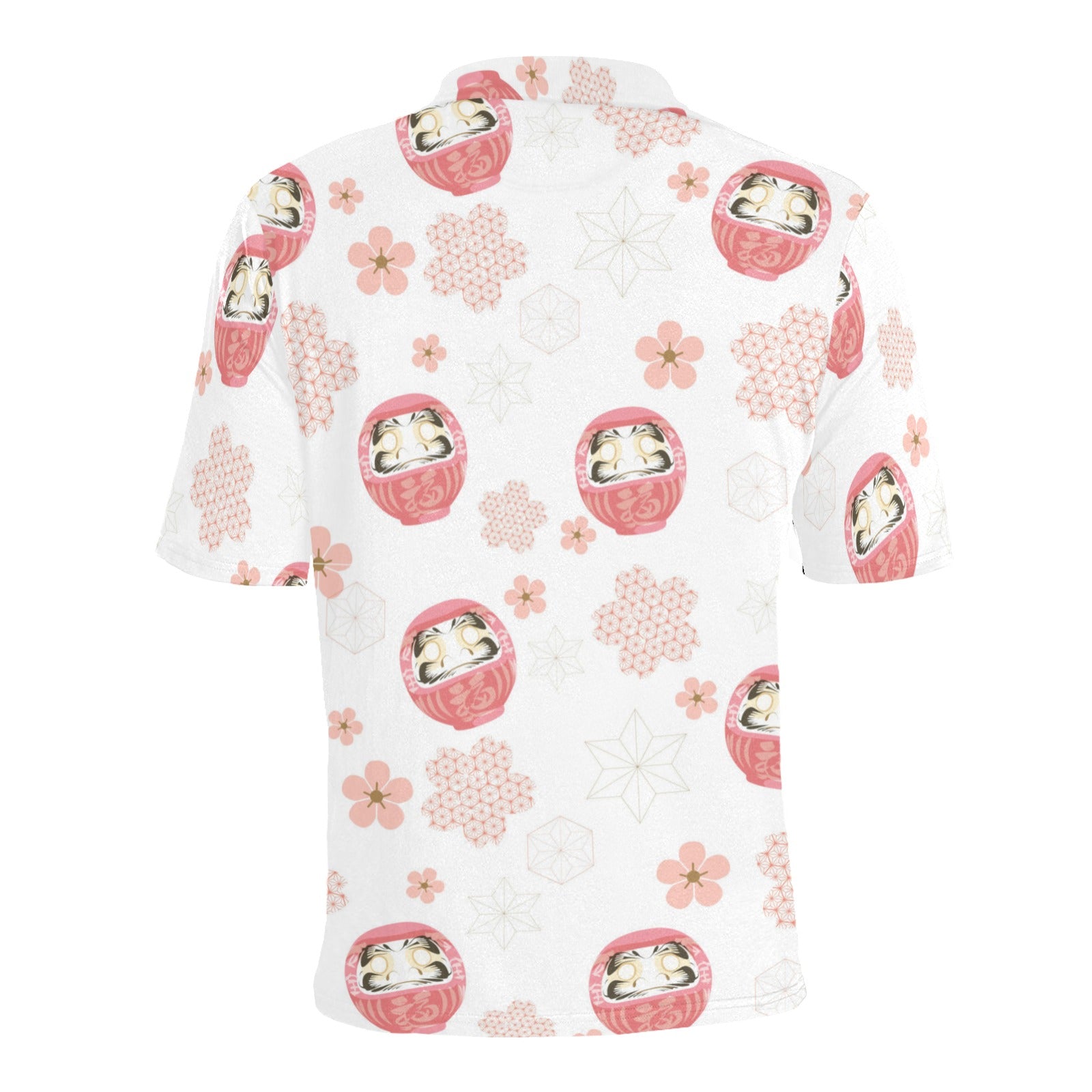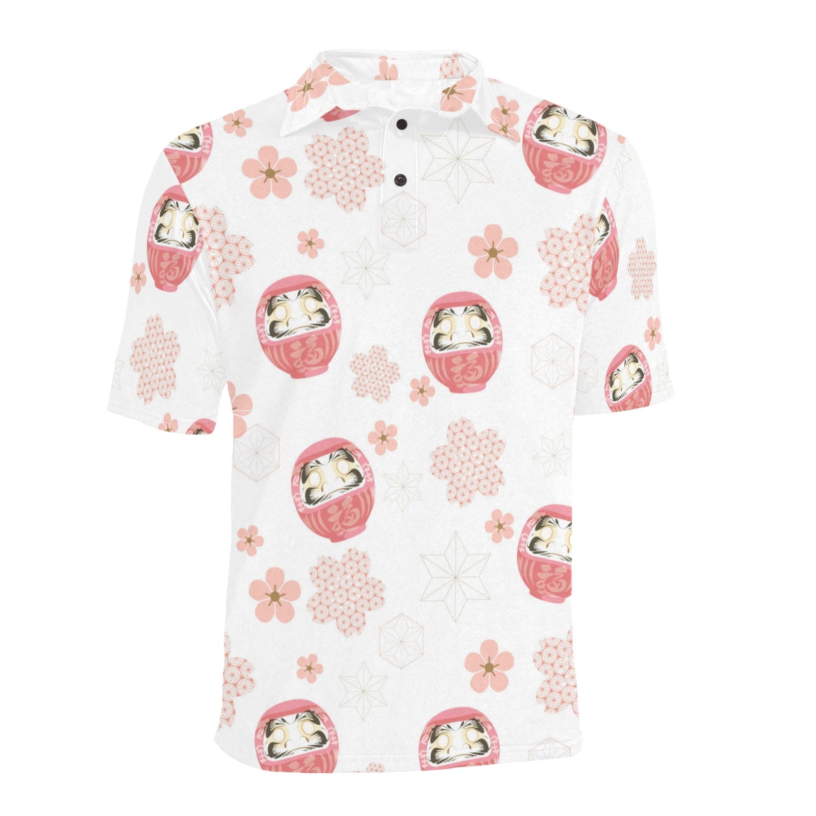 Daruma japanese wooden doll cherry blossom flower Men's All Over Print Polo Shirt