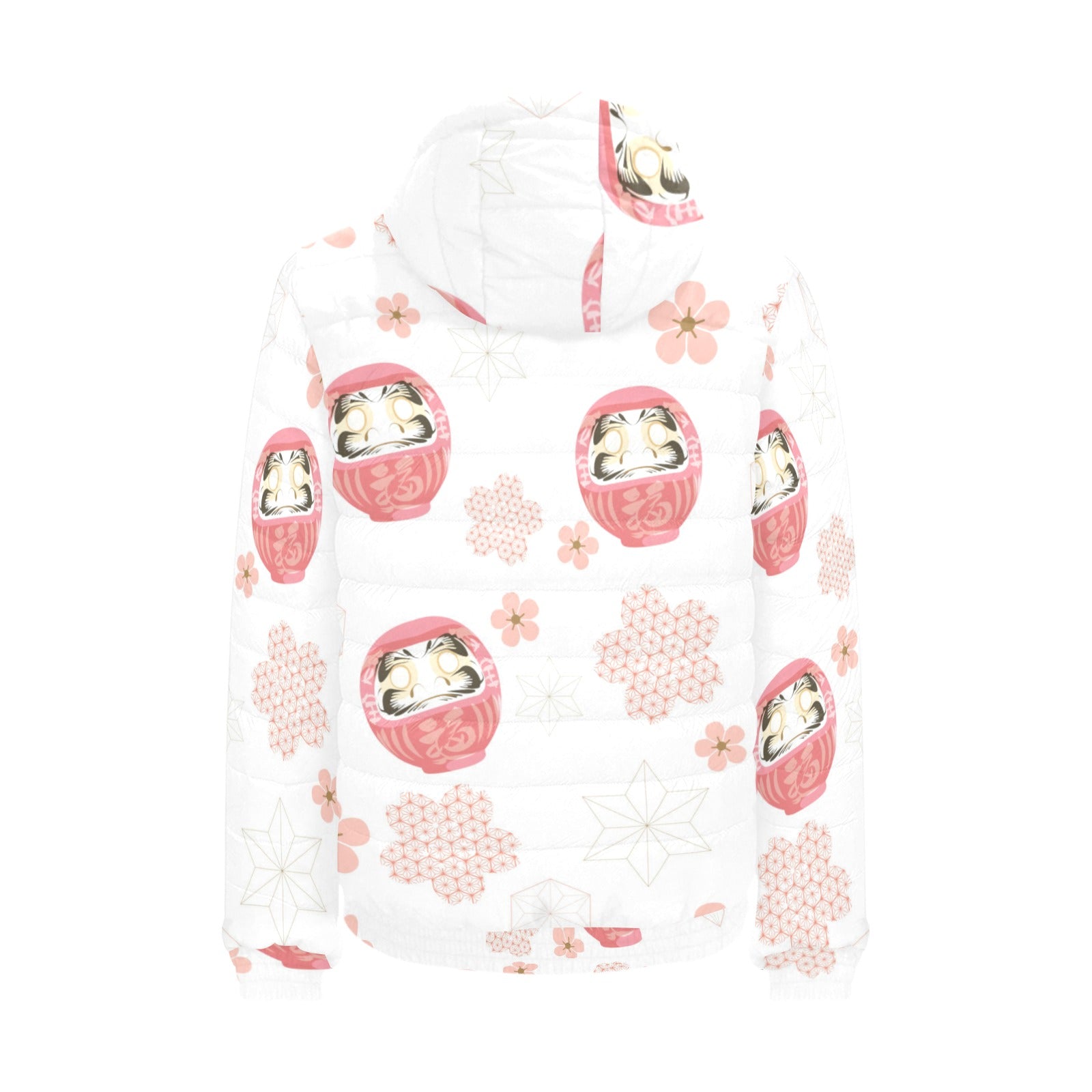 Daruma japanese wooden doll cherry blossom flower Men's Padded Hooded Jacket