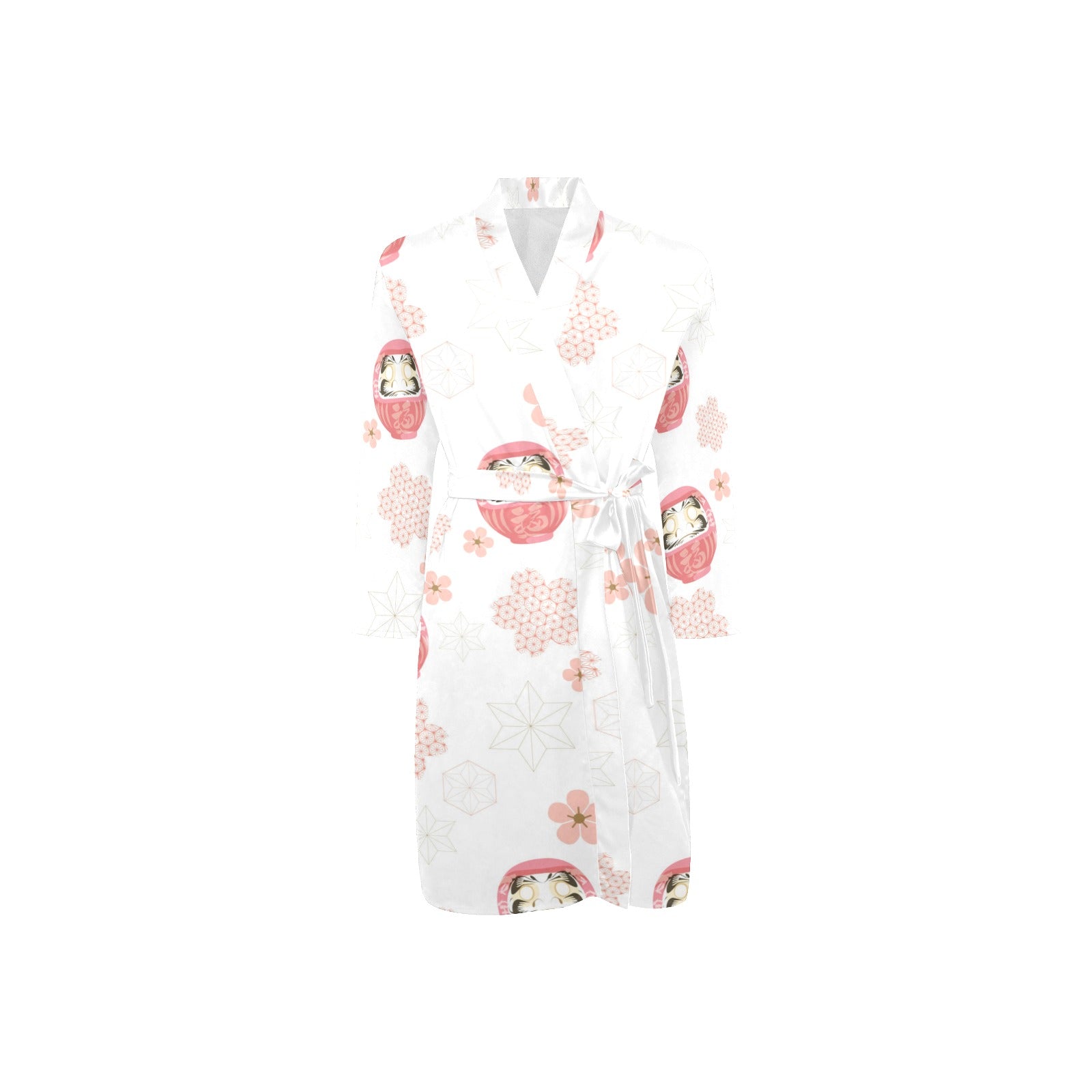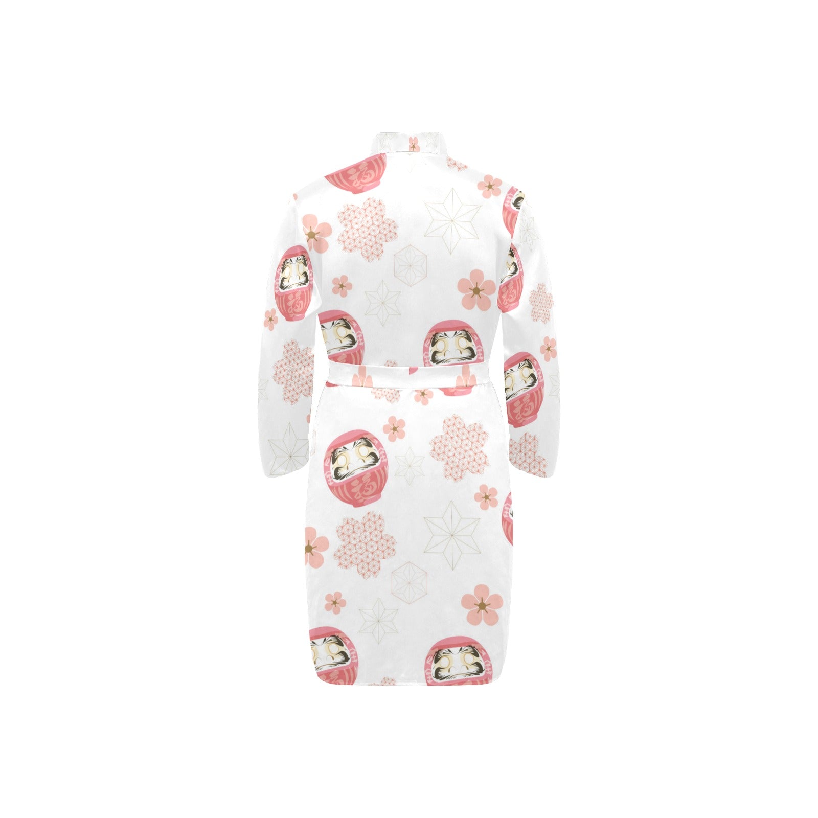 Daruma japanese wooden doll cherry blossom flower Men's Long Sleeve Belted Night Robe