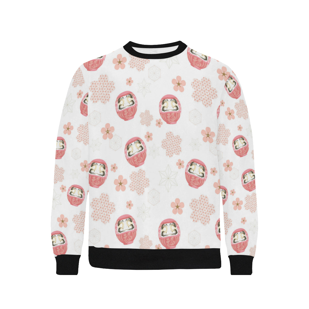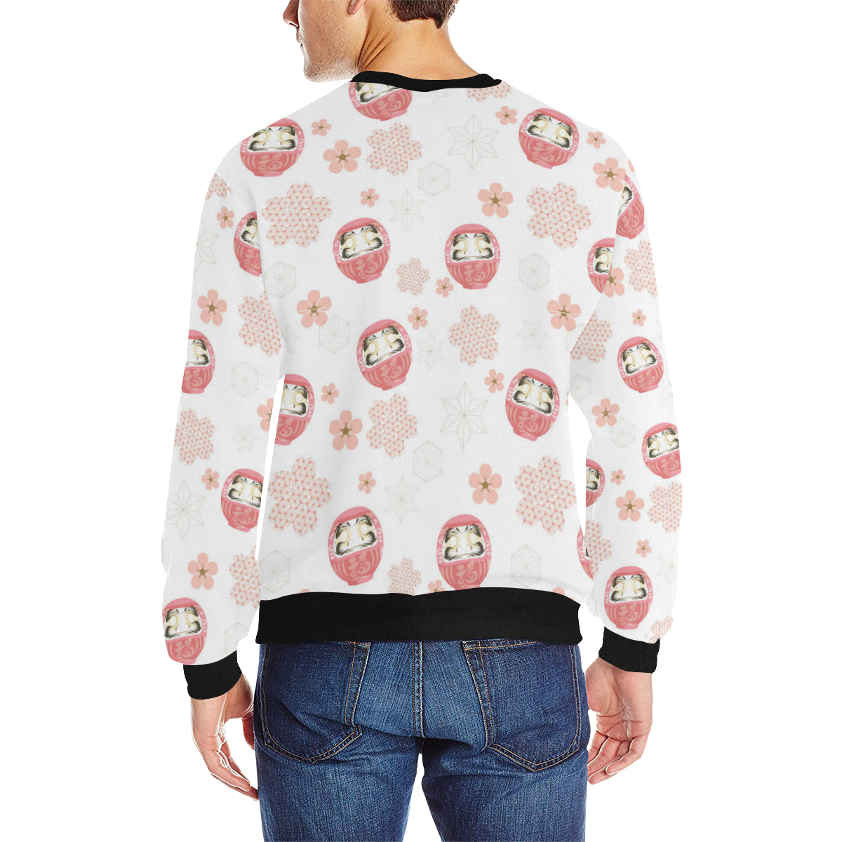 Daruma japanese wooden doll cherry blossom flower Men's Crew Neck Sweatshirt