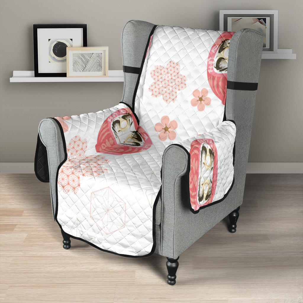 Daruma japanese wooden doll cherry blossom flower pattern Chair Cover Protector