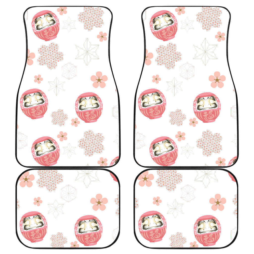 Daruma Japanese Wooden Doll Cherry Blossom Flower Pattern Front And Back Car Mats