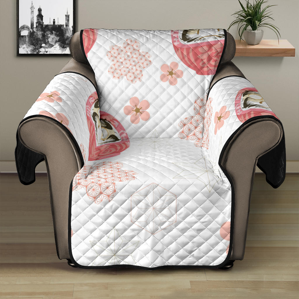 Daruma japanese wooden doll cherry blossom flower pattern Recliner Cover Protector
