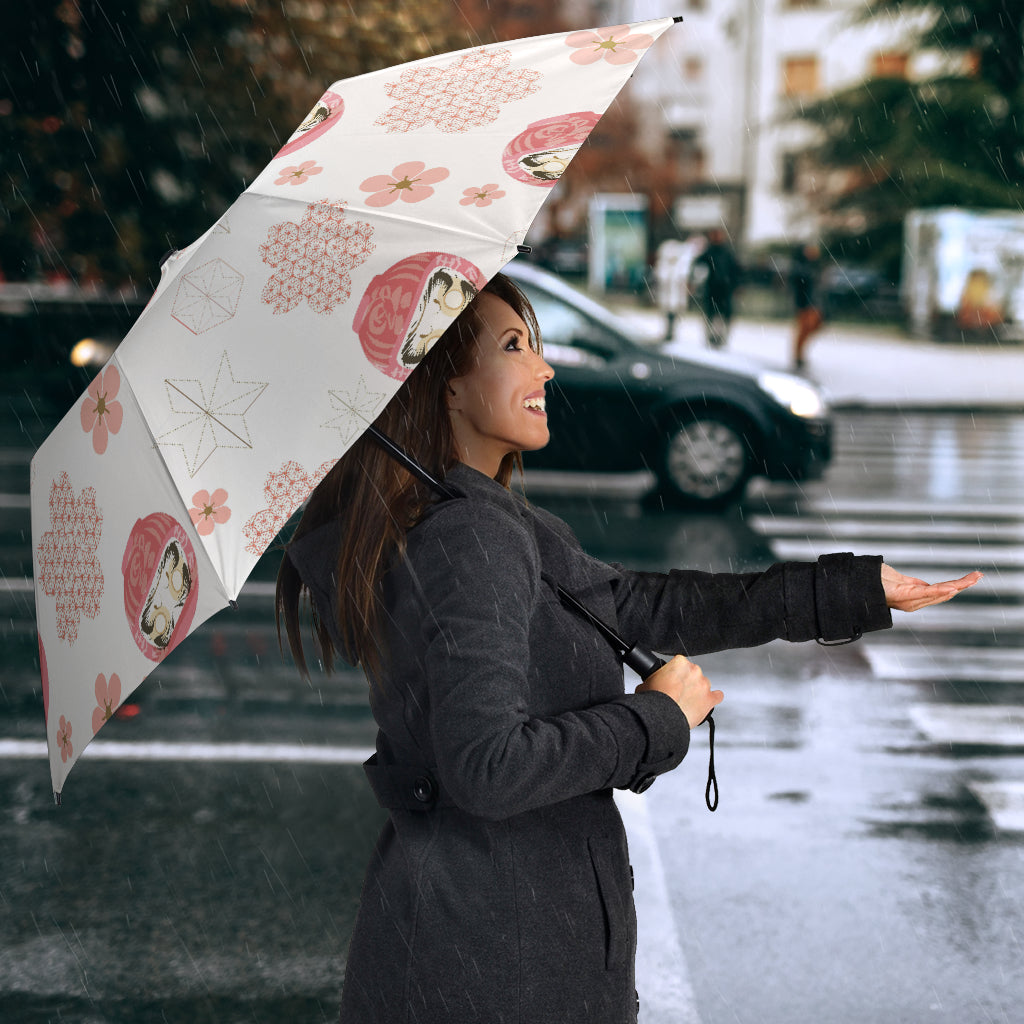 Daruma Japanese Wooden Doll Cherry Blossom Flower Pattern Umbrella
