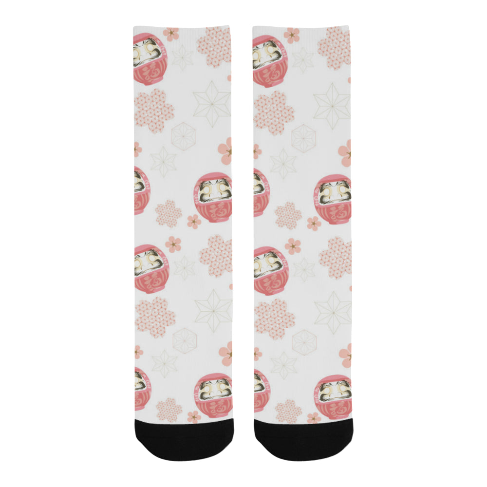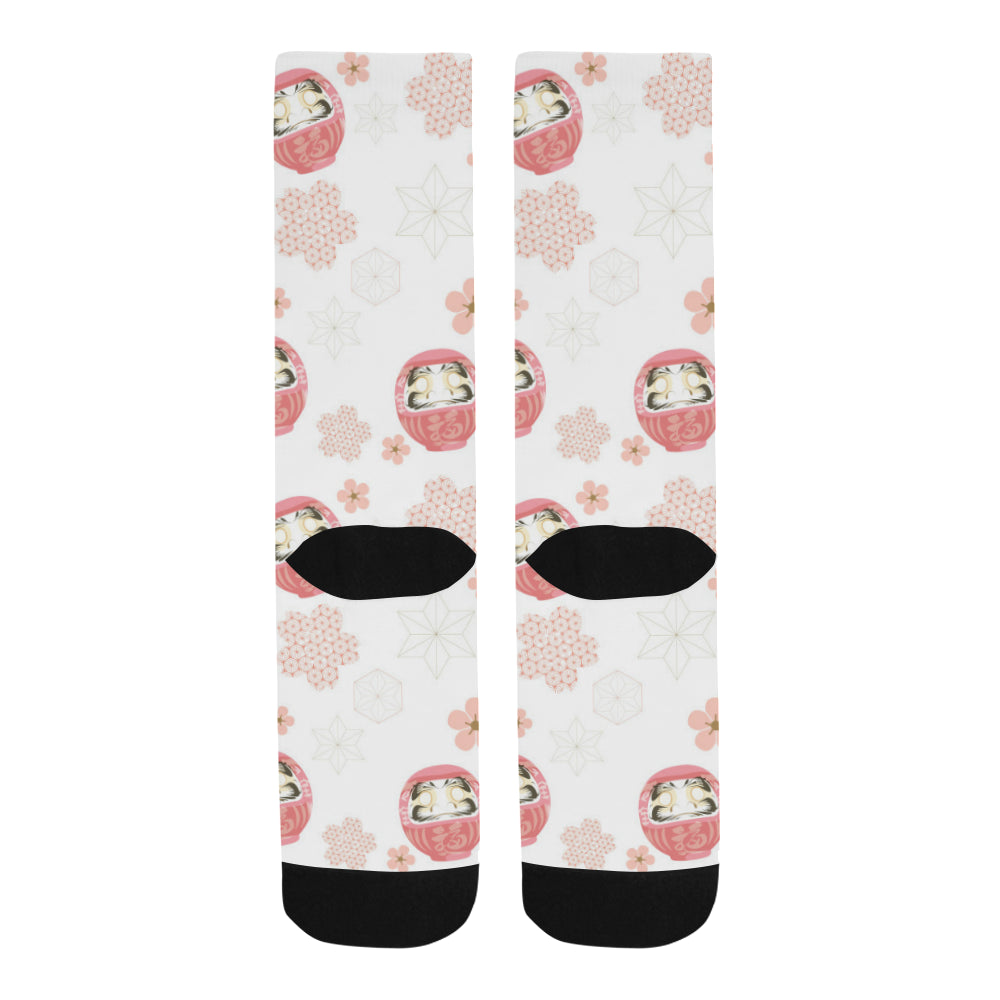 Daruma japanese wooden doll cherry blossom flower Crew Socks are uniqued design and limited item. It made to order, hand printed, and sewn with love in our factory.