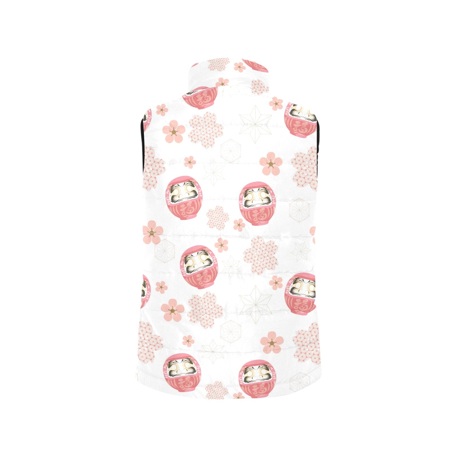 Daruma japanese wooden doll cherry blossom flower Women's Padded Vest