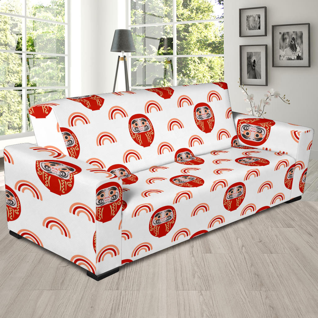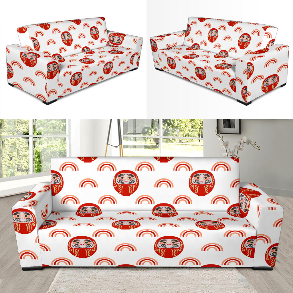 Daruma japanese wooden doll design pattern Sofa Slipcover is a uniqued design and limited item. It made to order, hand printed, and sewn with love in our factory.