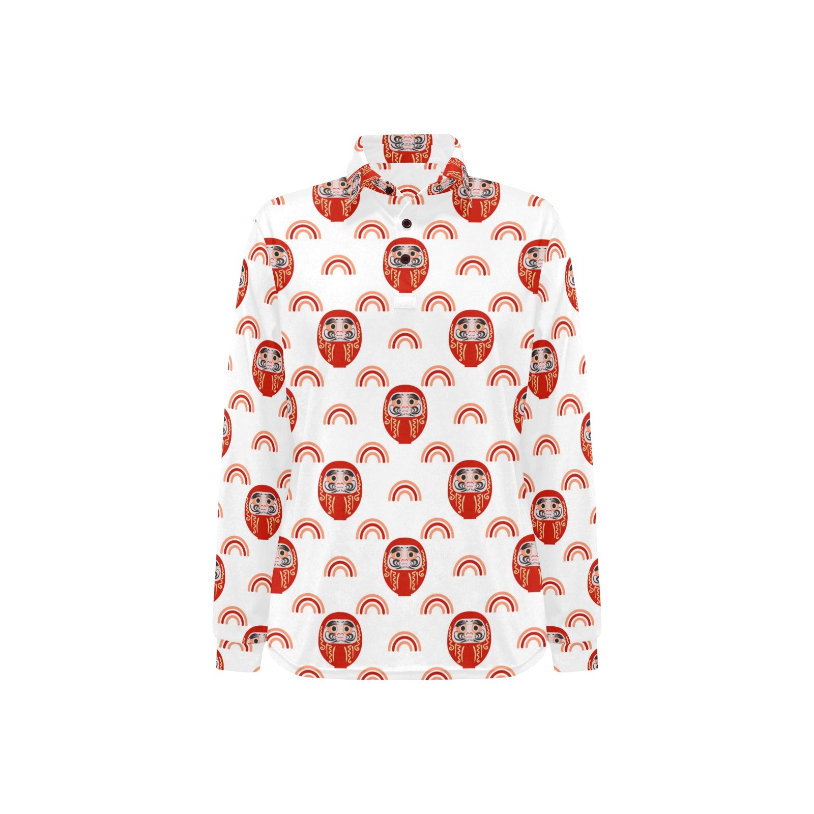 Daruma japanese wooden doll design pattern Women's Long Sleeve Polo Shirt