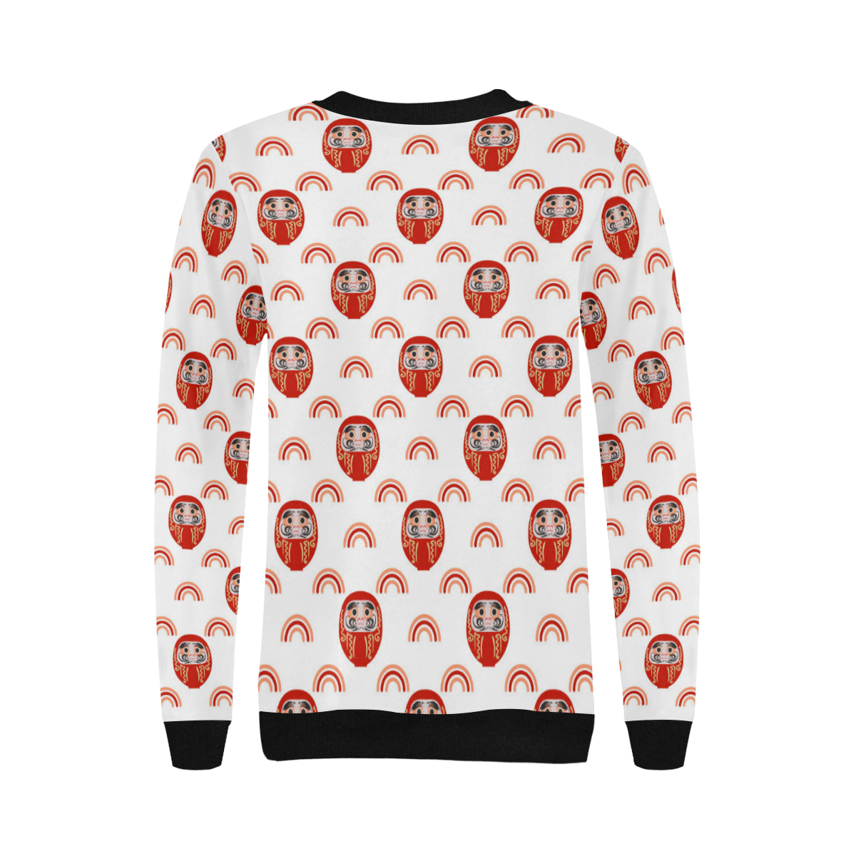 Daruma japanese wooden doll design pattern Women's Crew Neck Sweatshirt