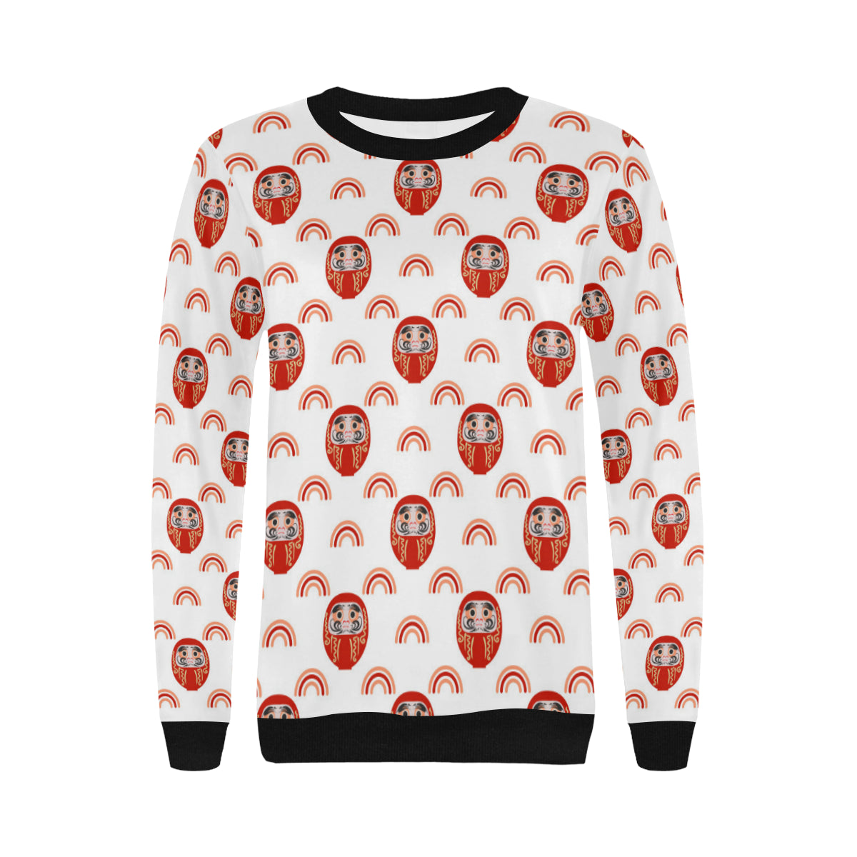 Daruma japanese wooden doll design pattern Women's Crew Neck Sweatshirt is a uniqued design and limited item. It made to order, hand printed, and sewn with love in our factory.