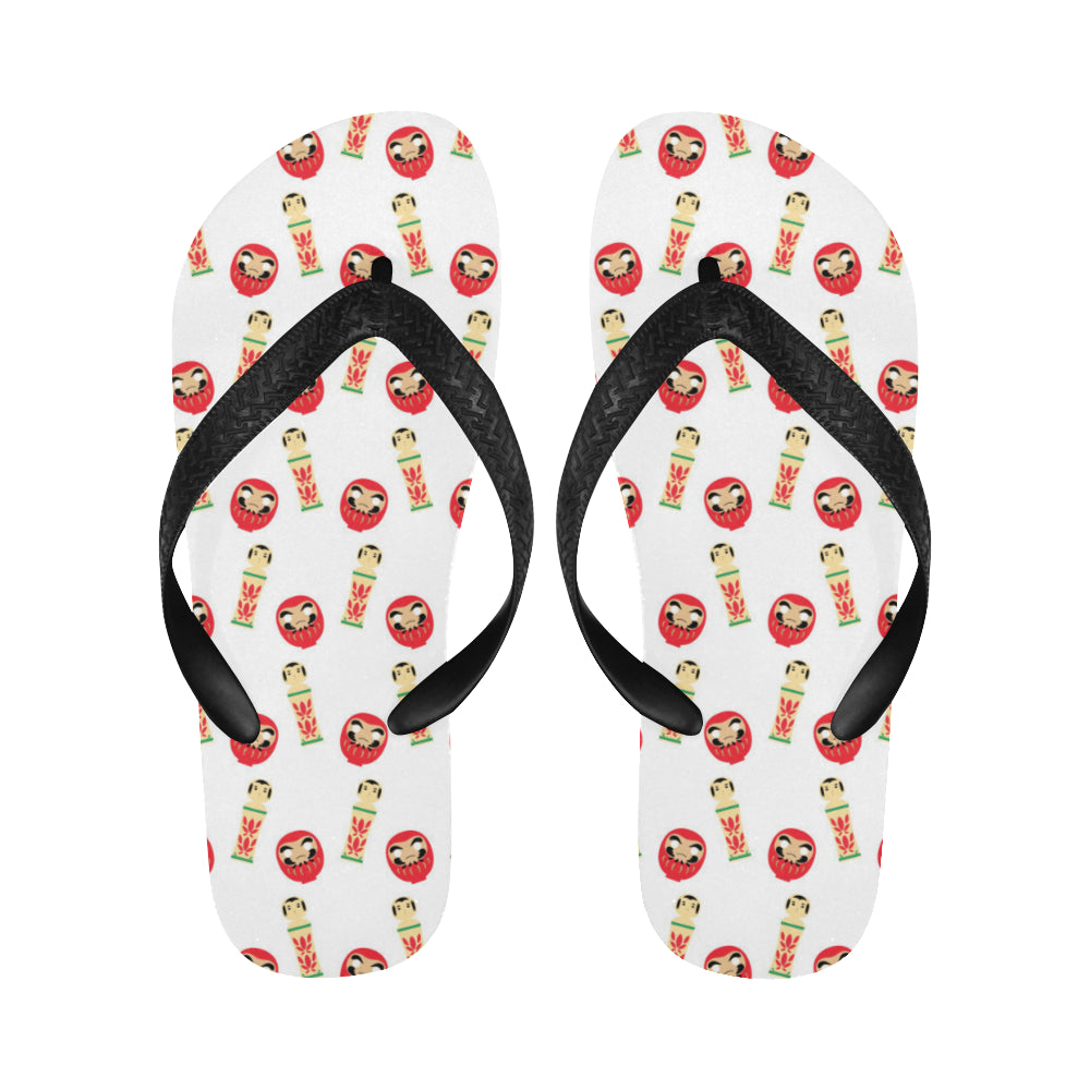 Daruma japanese wooden doll Unisex Flip Flops is a uniqued design and limited item. It made to order, hand printed, and sewn with love in our factory.