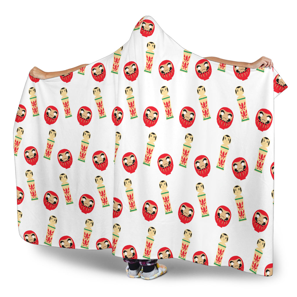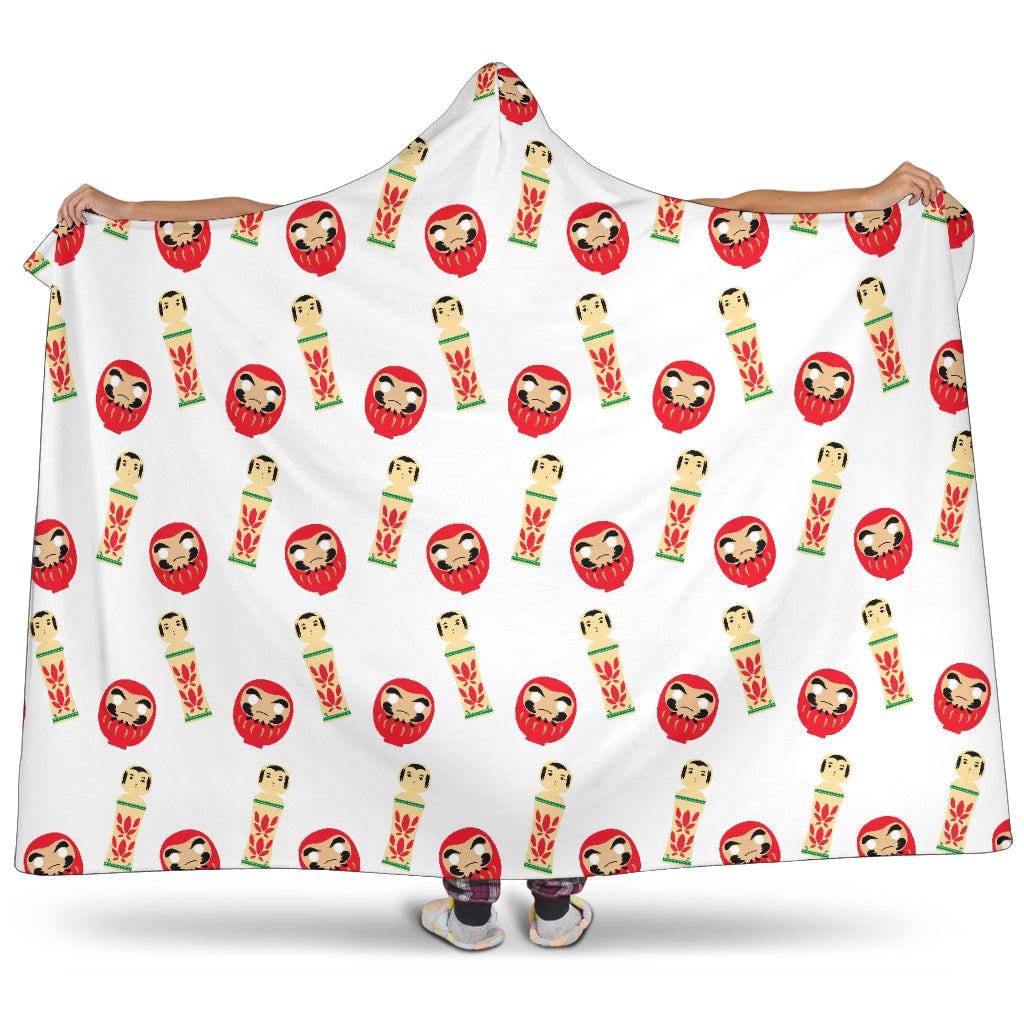 Daruma Japanese Wooden Doll Hooded Blanket