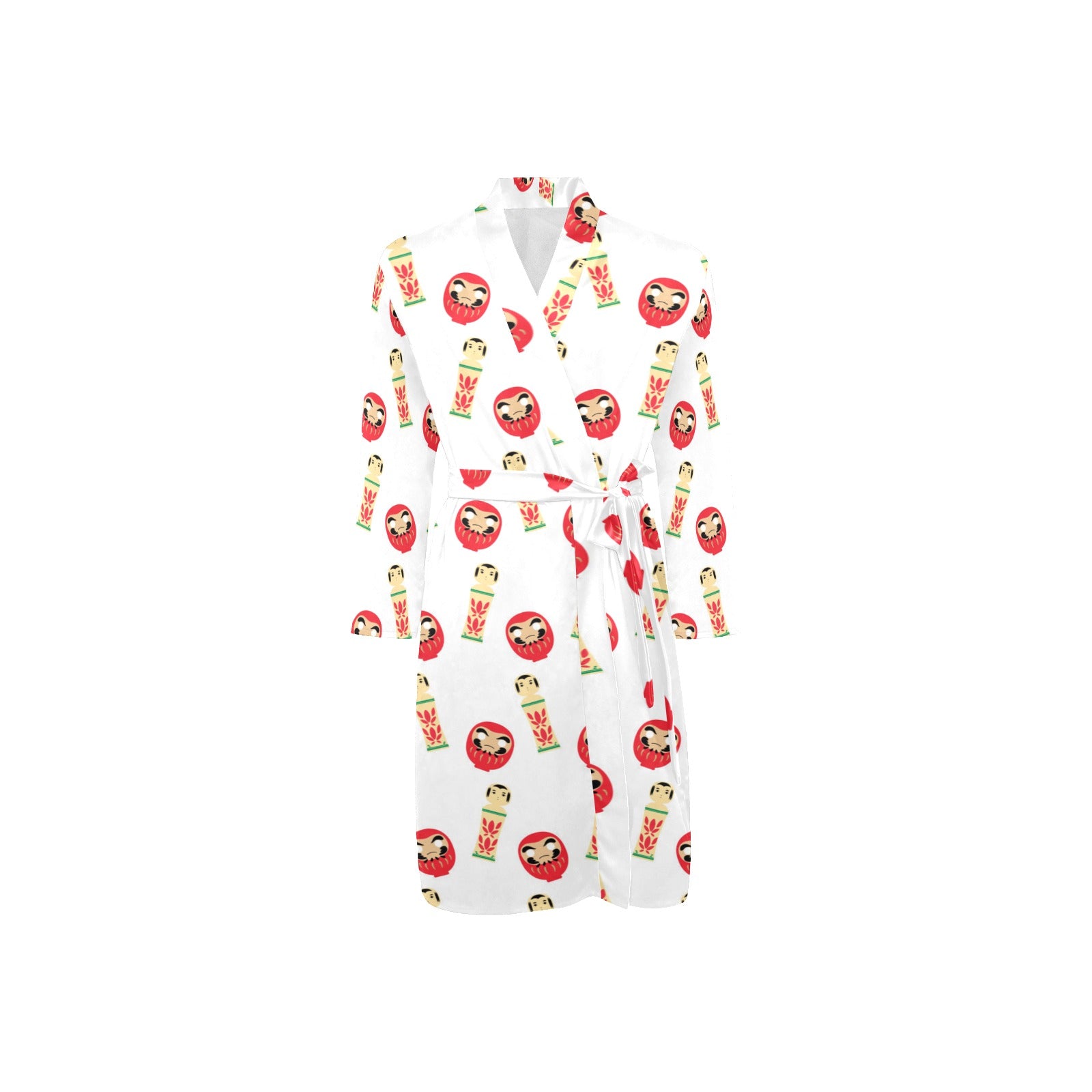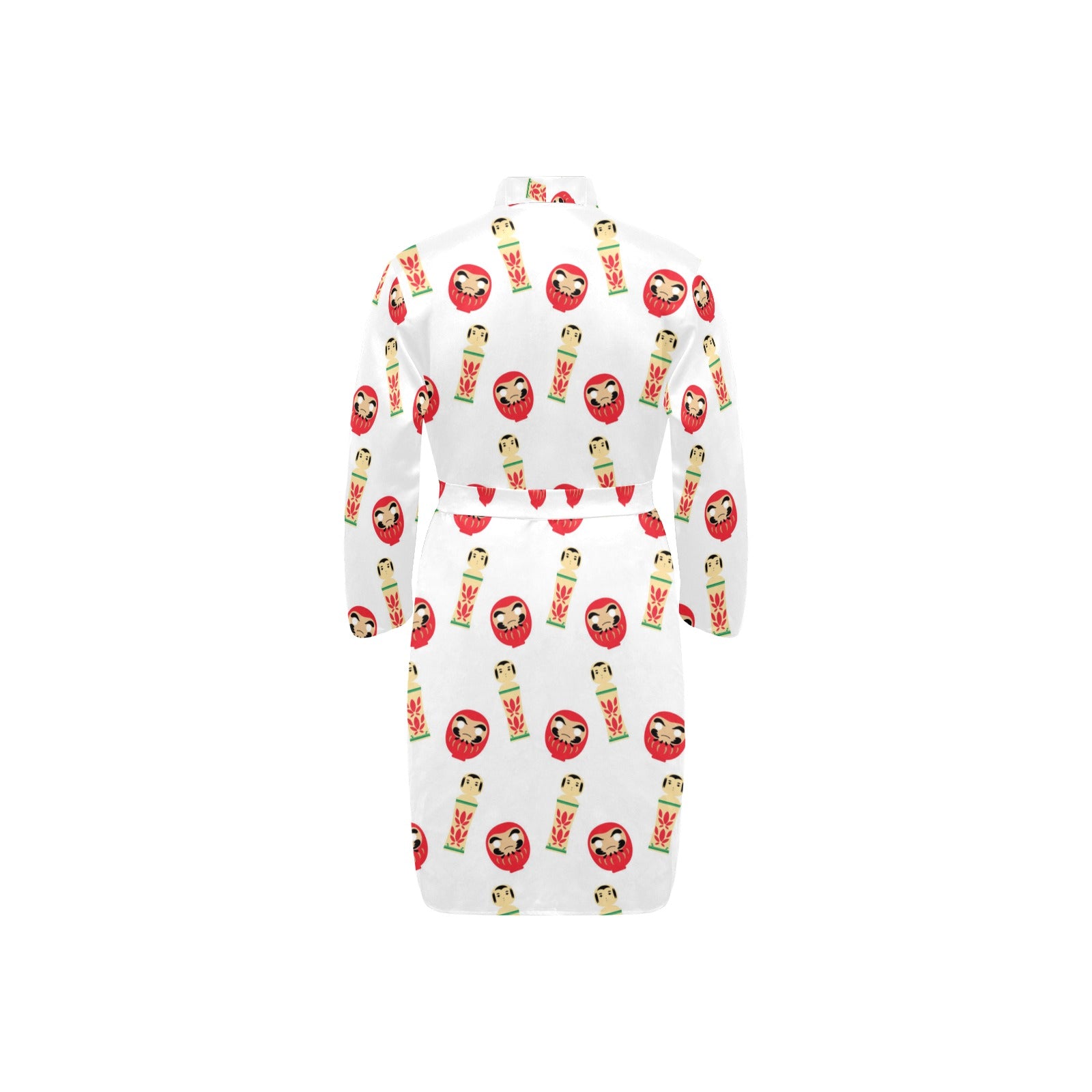 Daruma japanese wooden doll Men's Long Sleeve Belted Night Robe