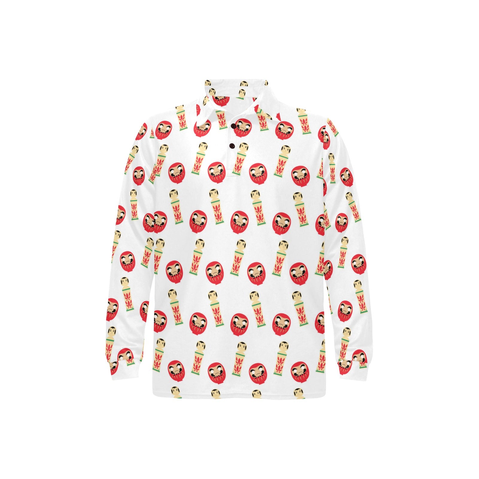 Daruma japanese wooden doll Men's Long Sleeve Polo Shirt