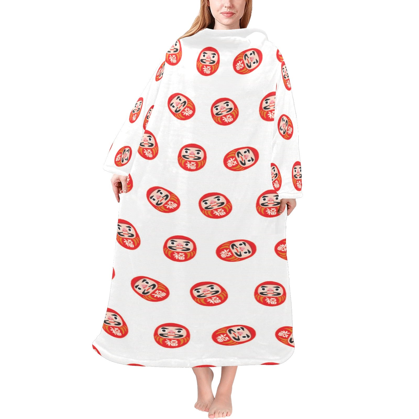 Daruma japanese wooden doll pattern Blanket Robe with Sleeves