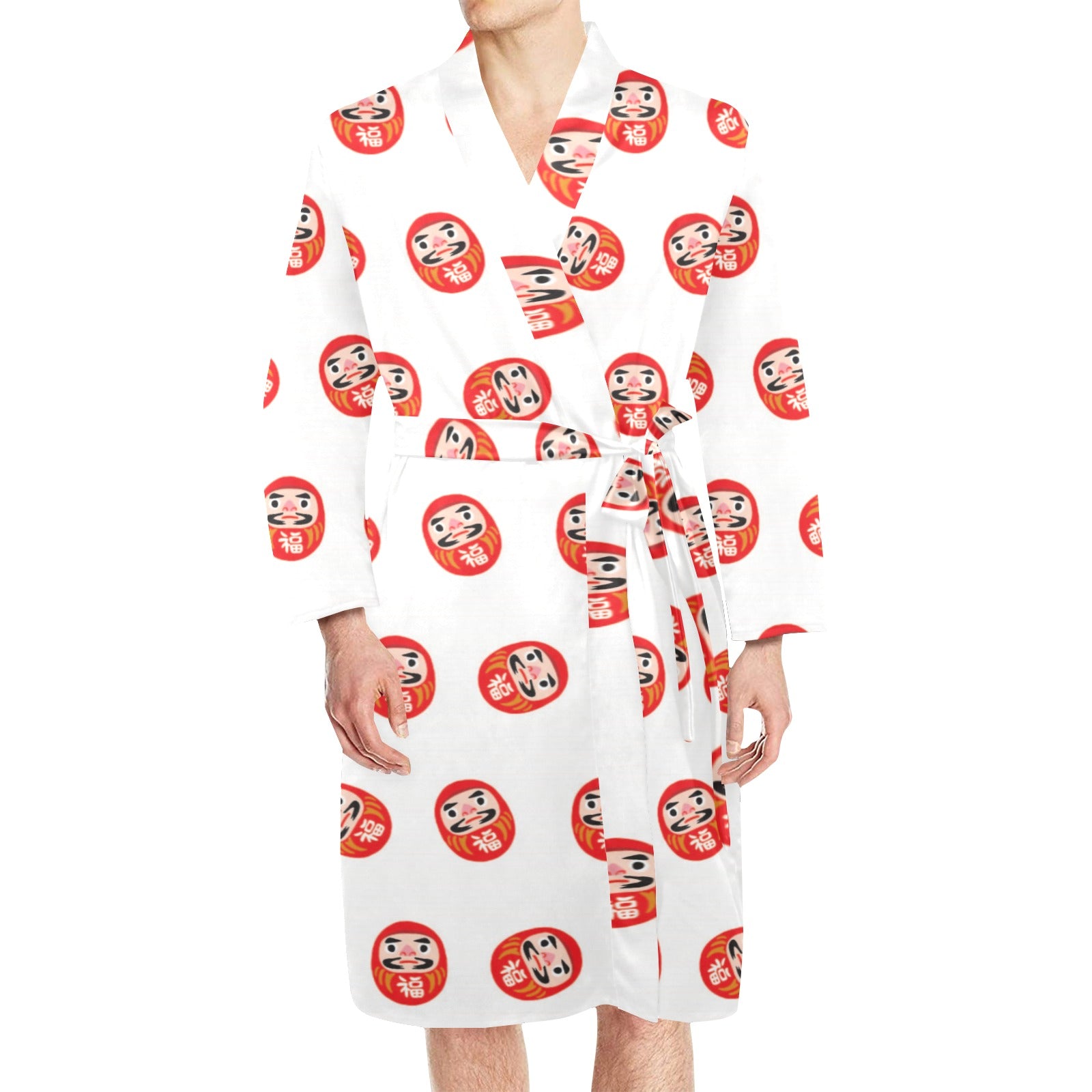 Daruma japanese wooden doll pattern Men's Long Sleeve Belted Night Robe