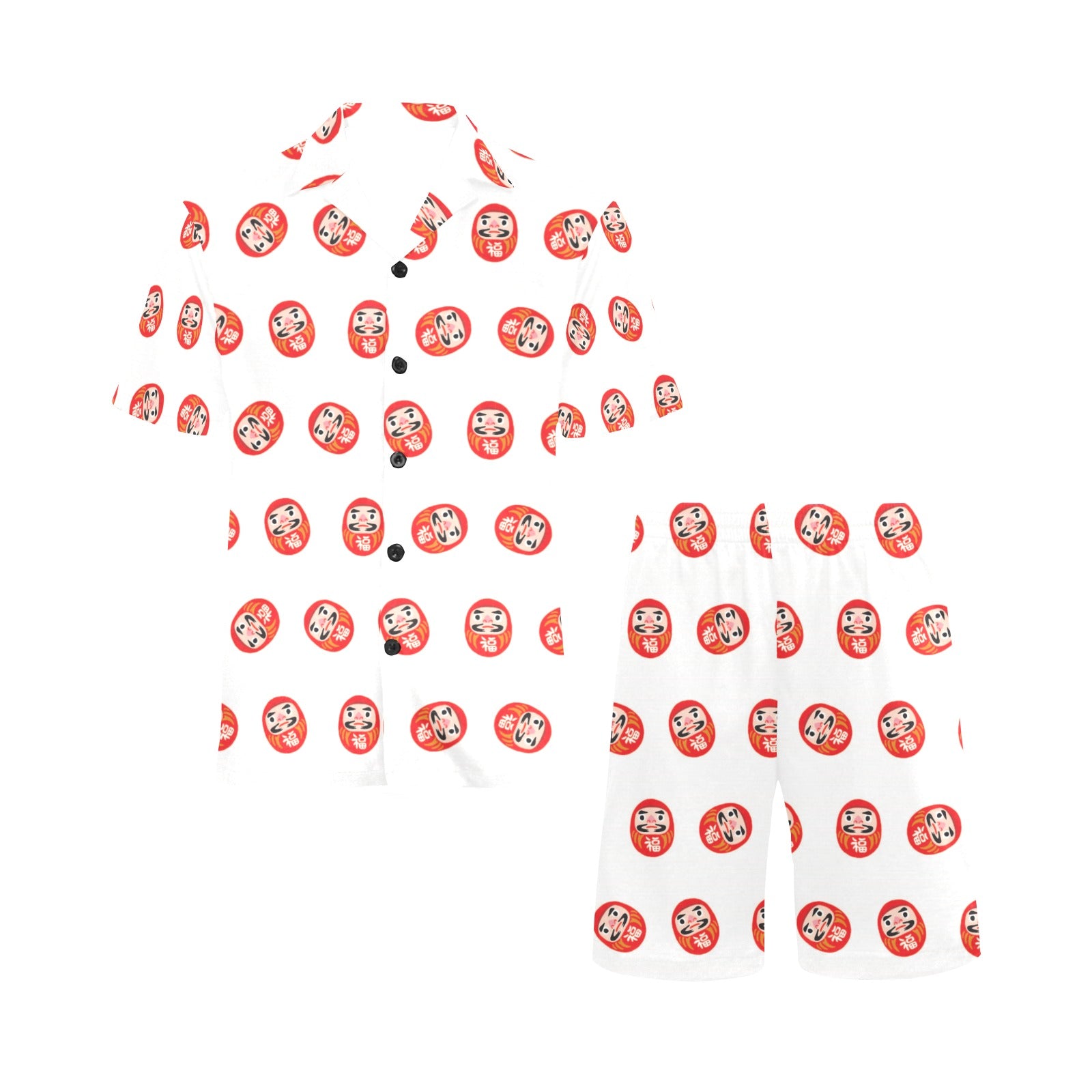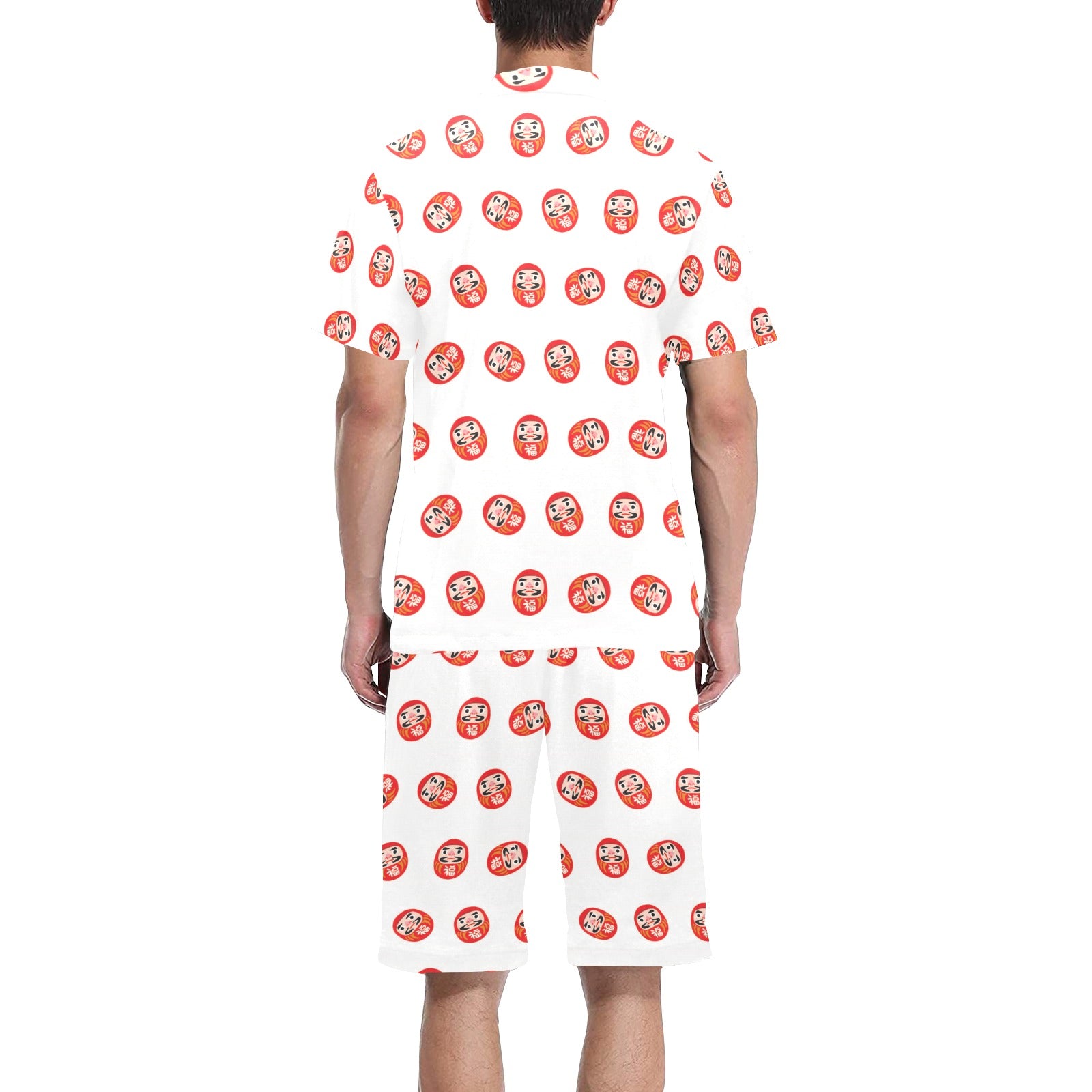 Daruma japanese wooden doll pattern Men's V-Neck Short Pajama Set
