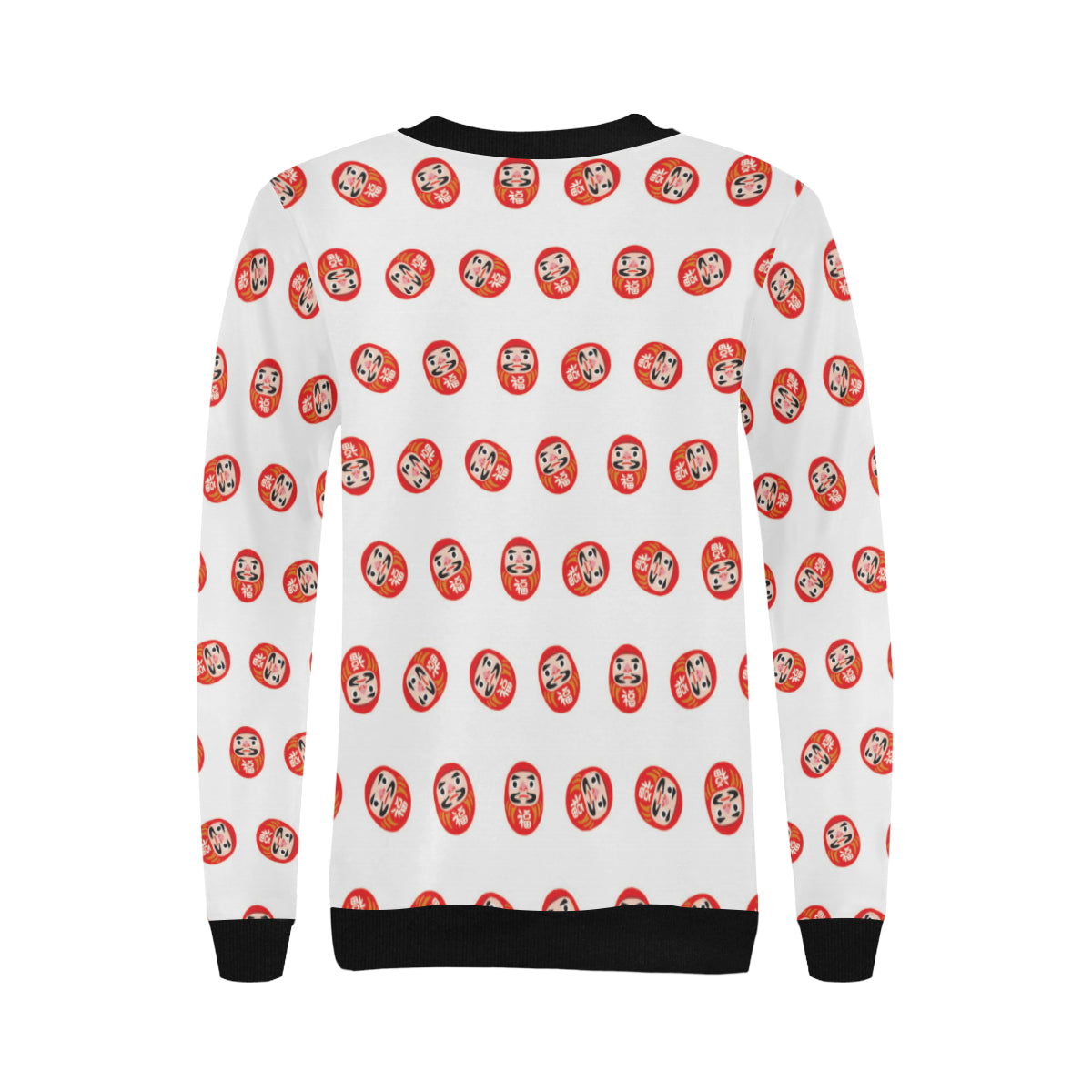 Daruma japanese wooden doll pattern Women's Crew Neck Sweatshirt