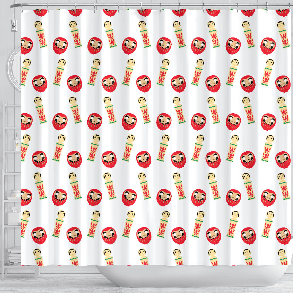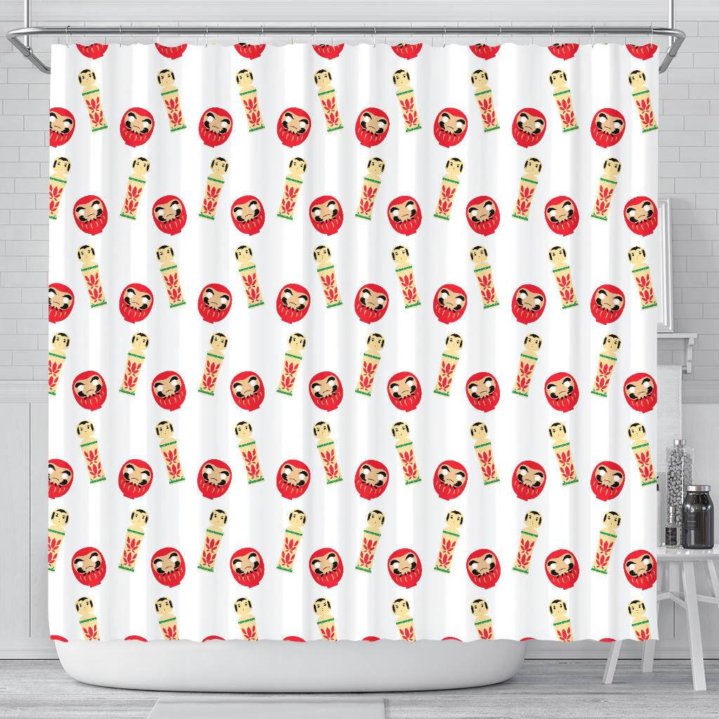 Daruma japanese wooden doll Shower Curtain is a uniqued design and limited item. It made to order, hand printed, and sewn with love in our factory.