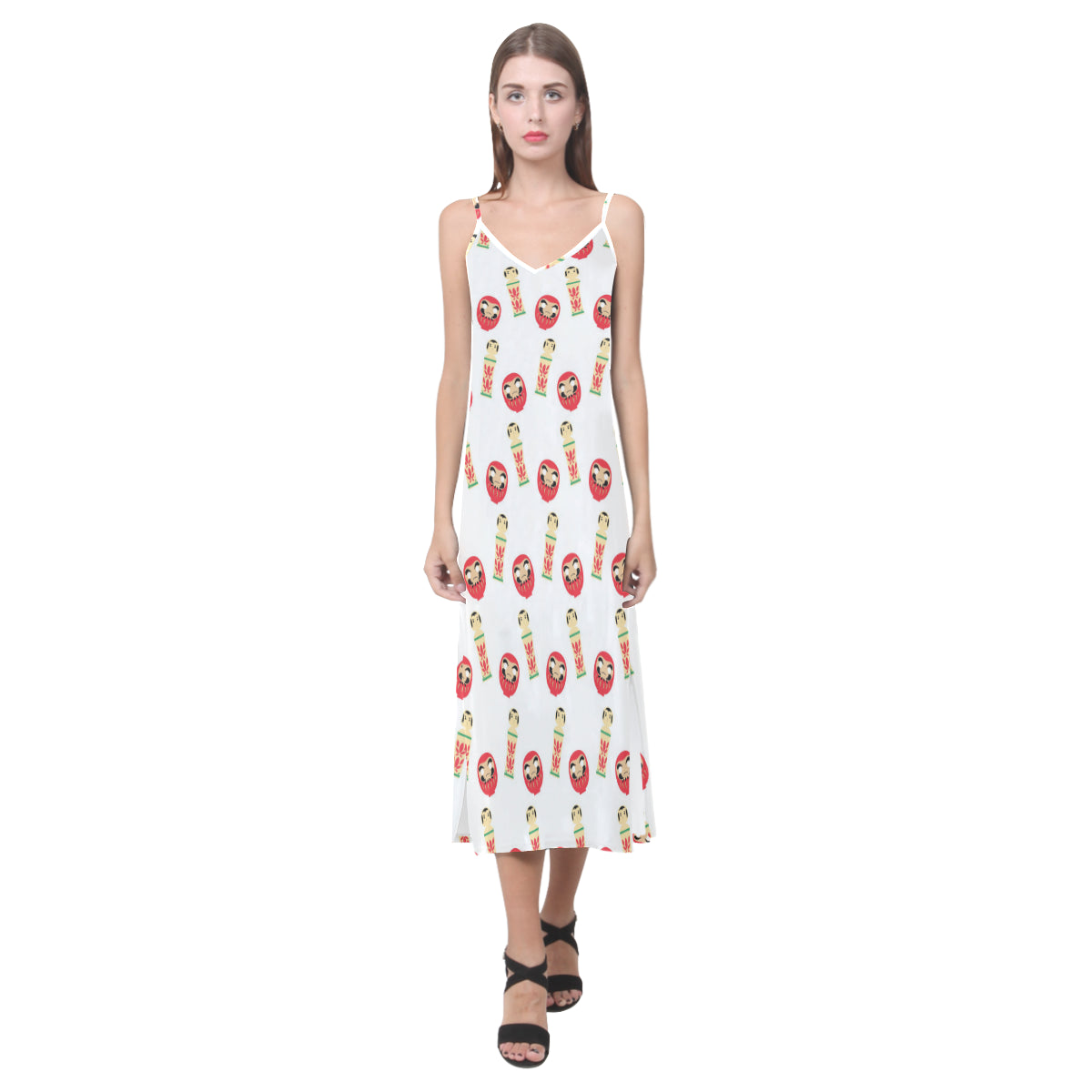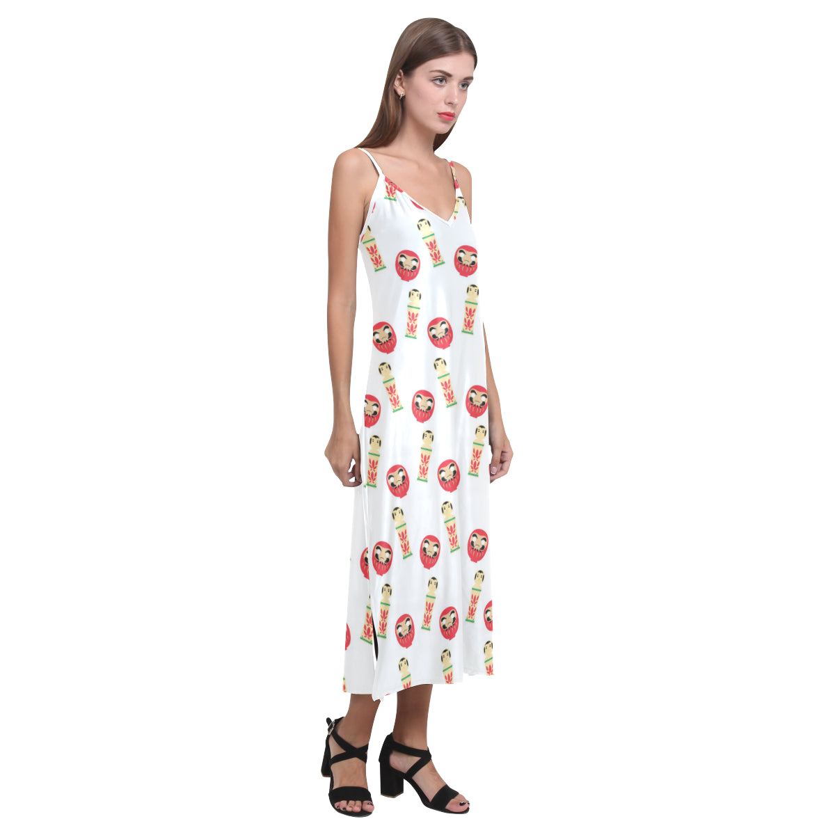 Daruma japanese wooden doll V-Neck Open Fork Long Dress