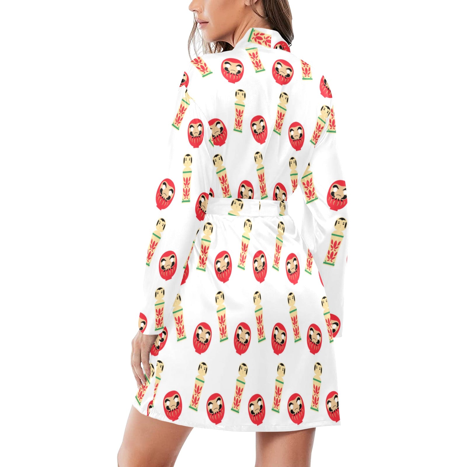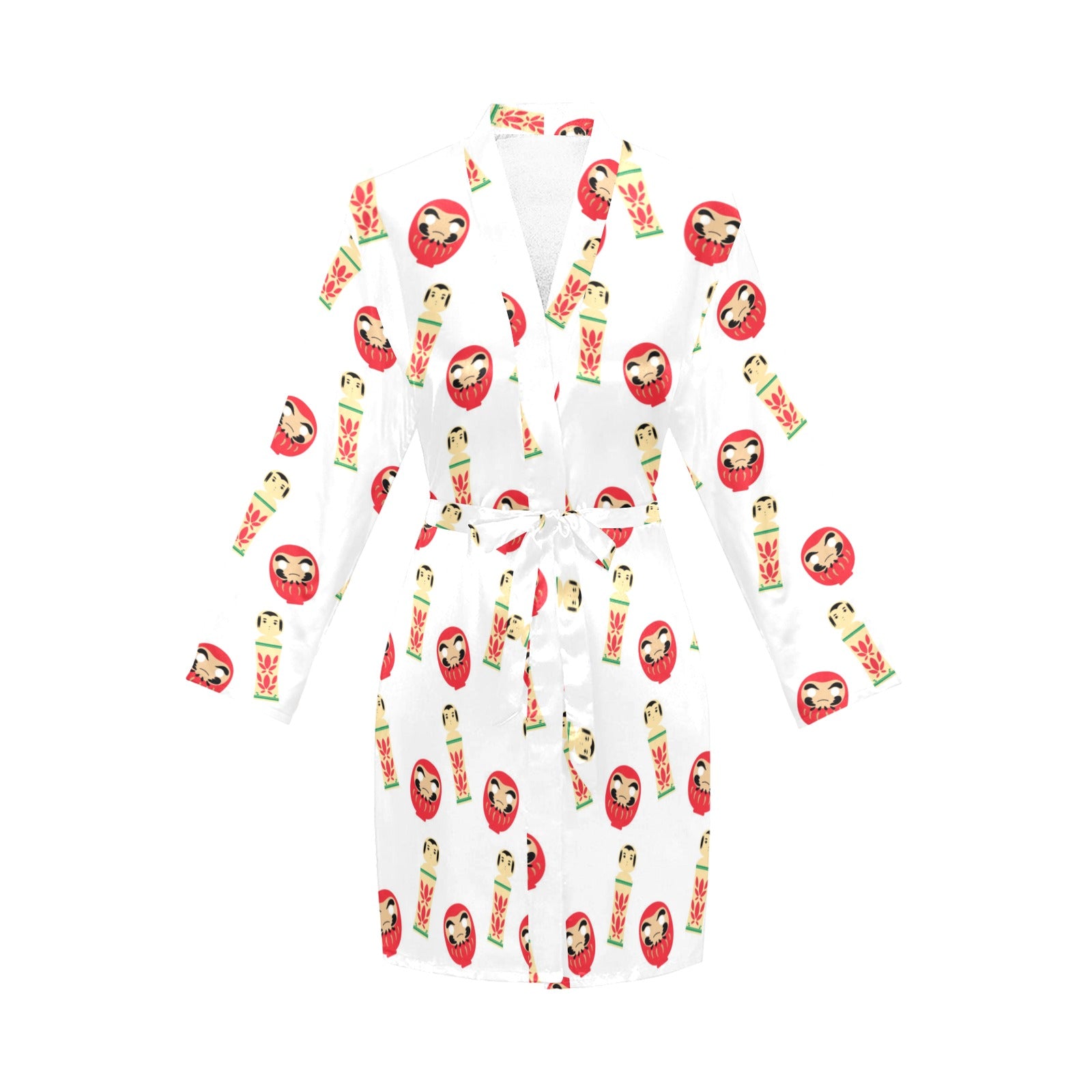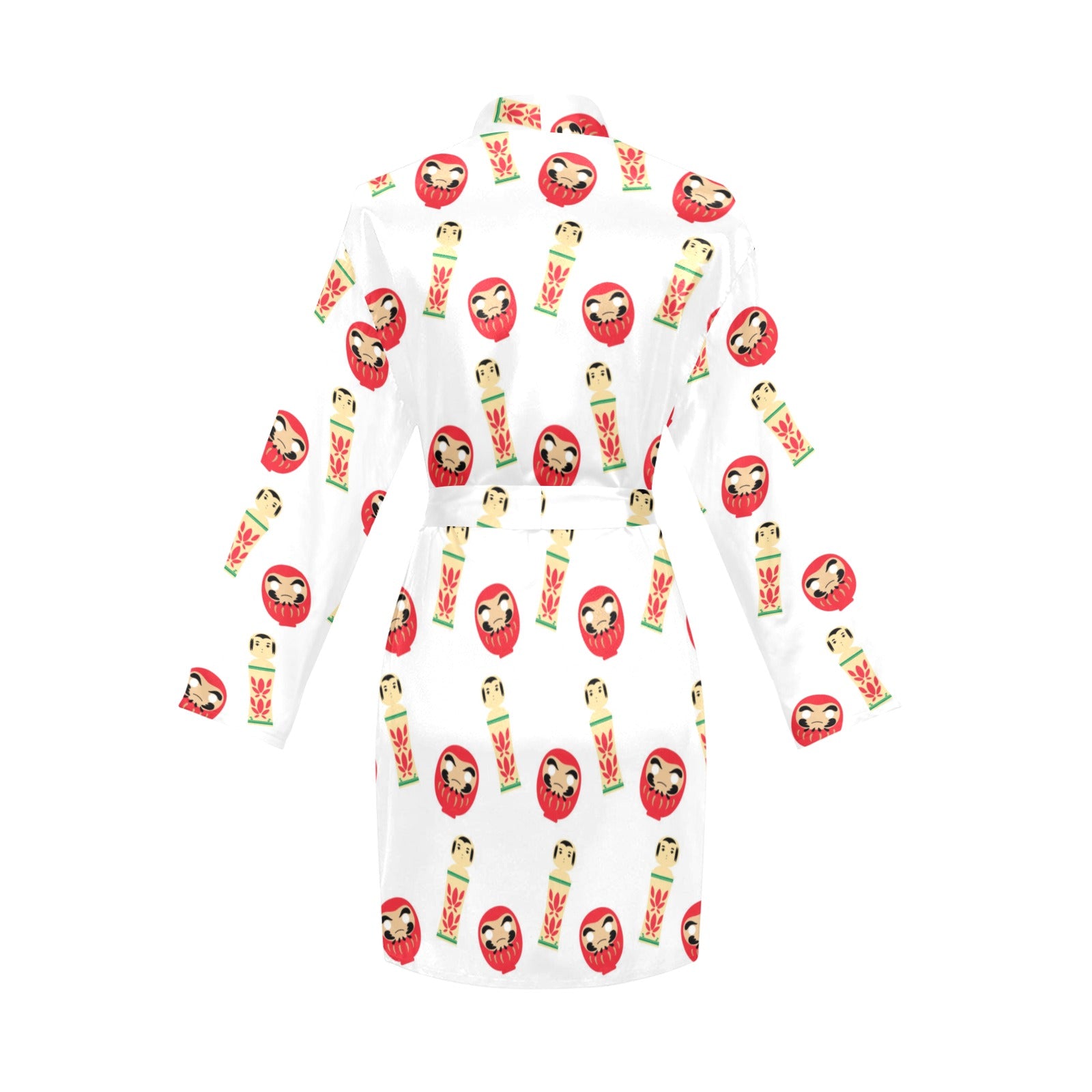 Daruma japanese wooden doll Women's Long Sleeve Belted Night Robe