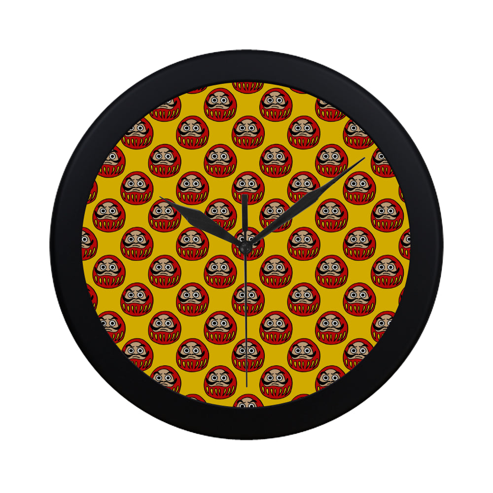 Daruma japanese wooden doll yellow background Elegant Black Wall Clock is a uniqued design and limited item. It made to order, hand printed, and sewn with love in our factory.