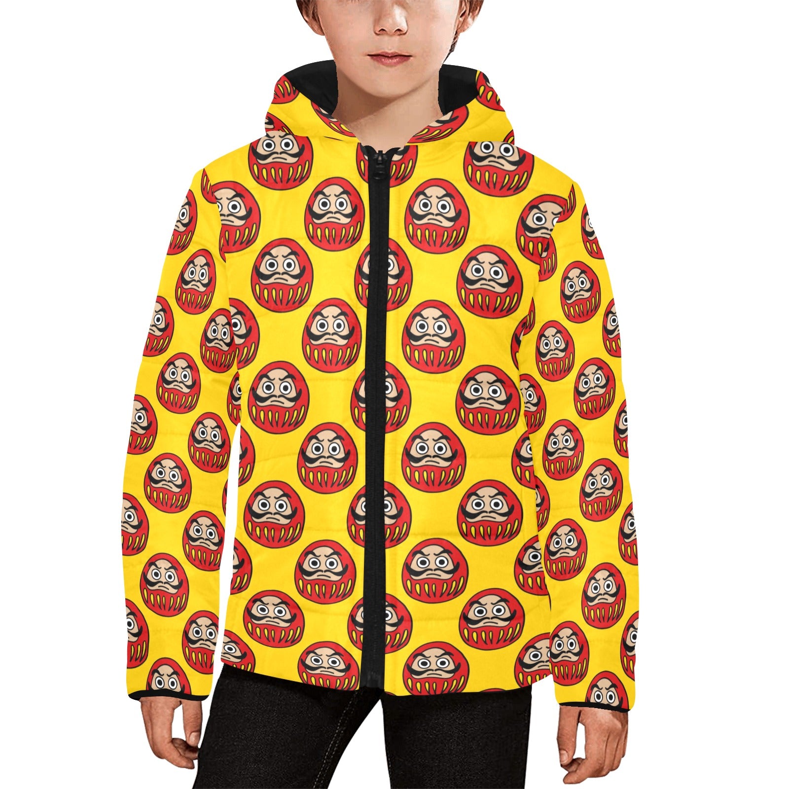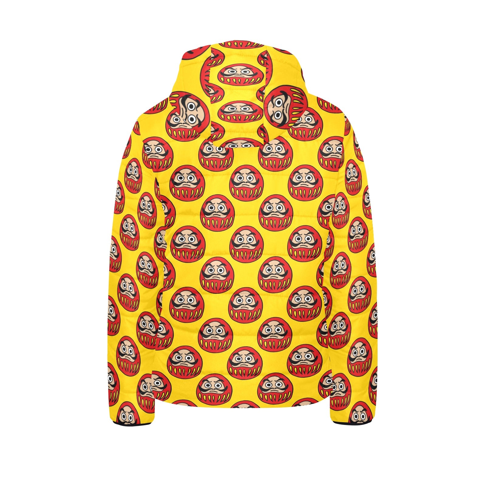 Daruma japanese wooden doll yellow background Kids' Boys' Girls' Padded Hooded Jacket
