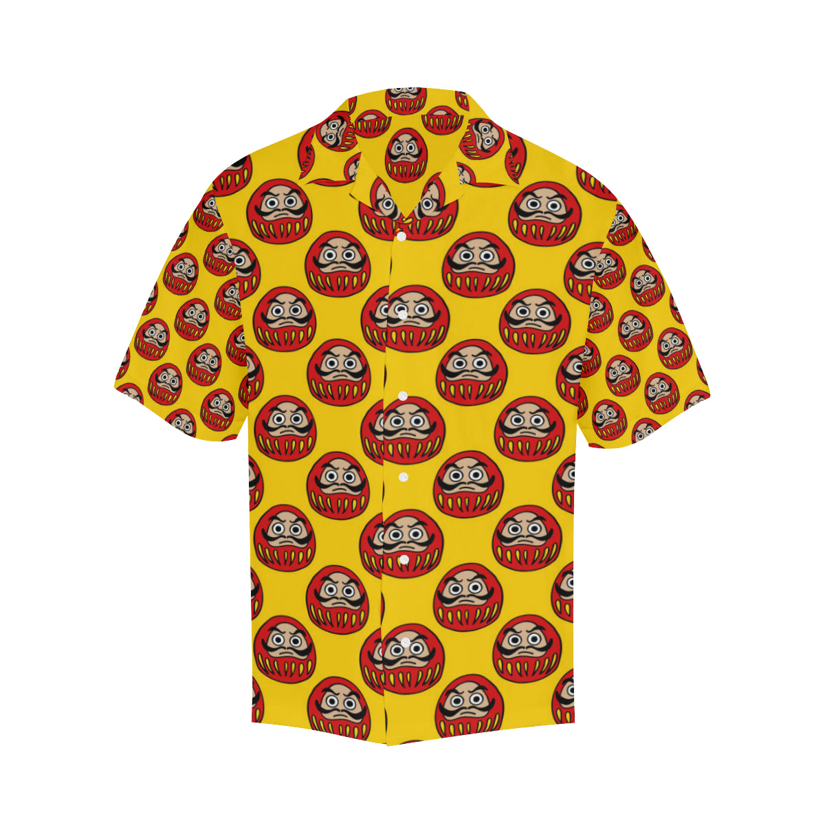 Daruma japanese wooden doll yellow background Men's All Over Print Hawaiian Shirt is a uniqued design and limited item. It made to order, hand printed, and sewn with love in our factory.